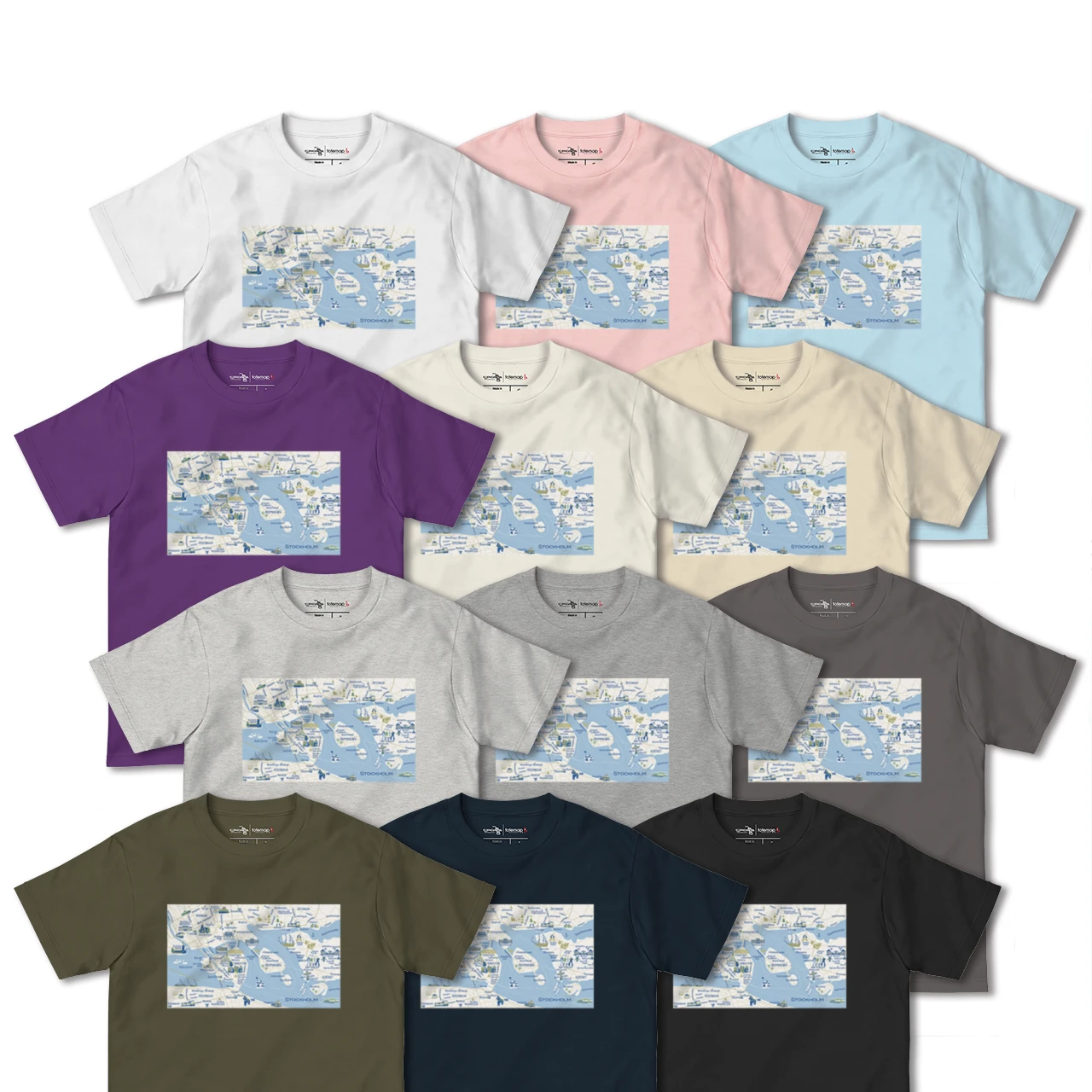 totemapとのコラボレーションで生まれたカラフルな地図柄Tシャツです。