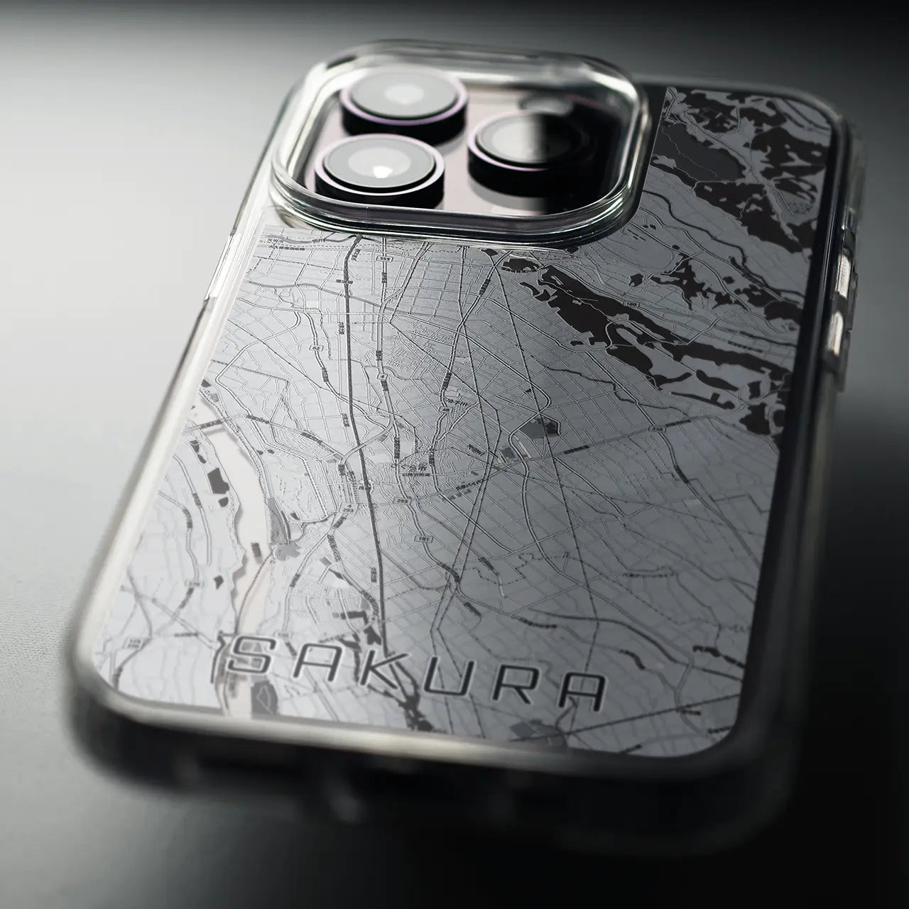 【さくら(栃木県)】地図柄iPhoneケース(MagSafeタイプ)モノトーン・iPhone 16 Pro 用