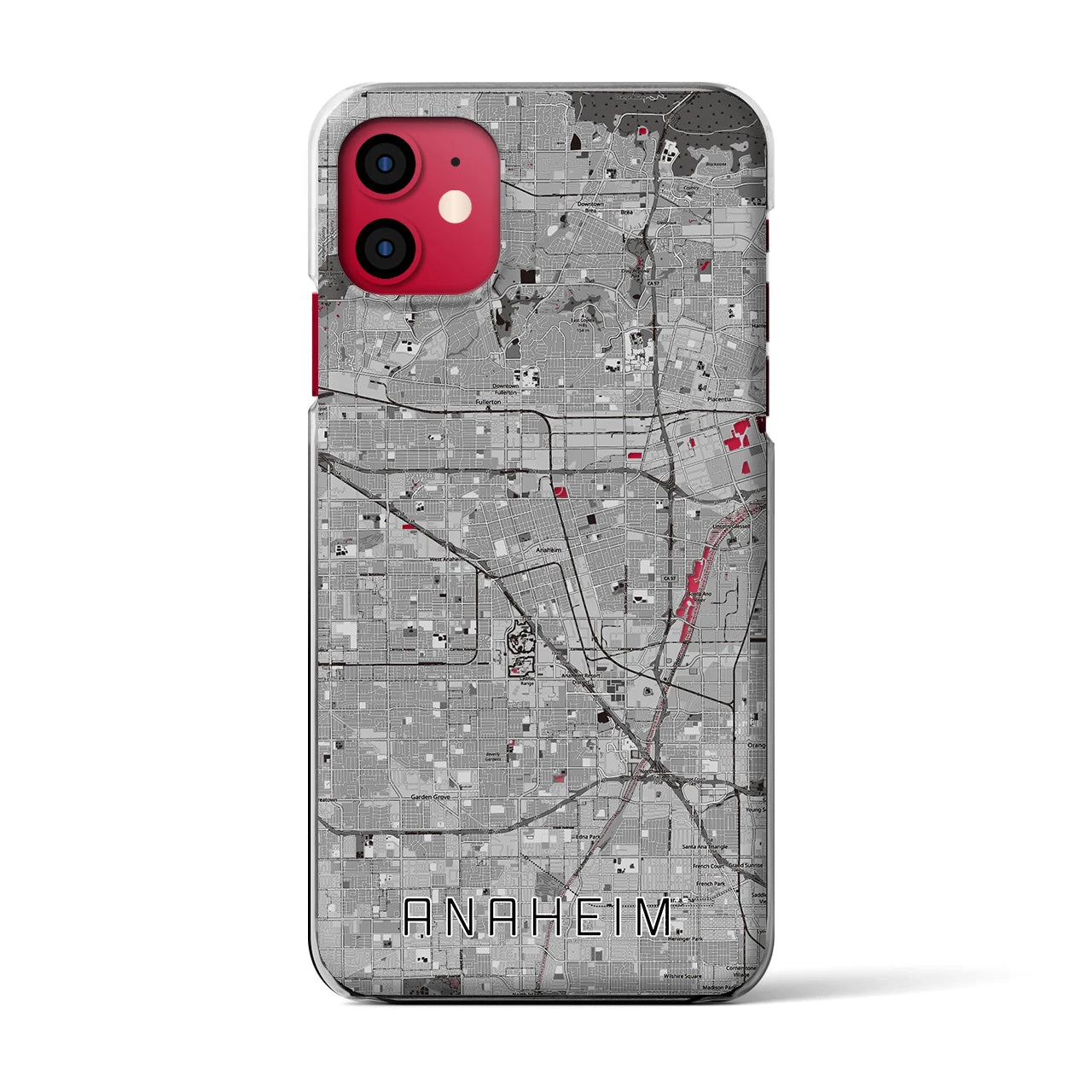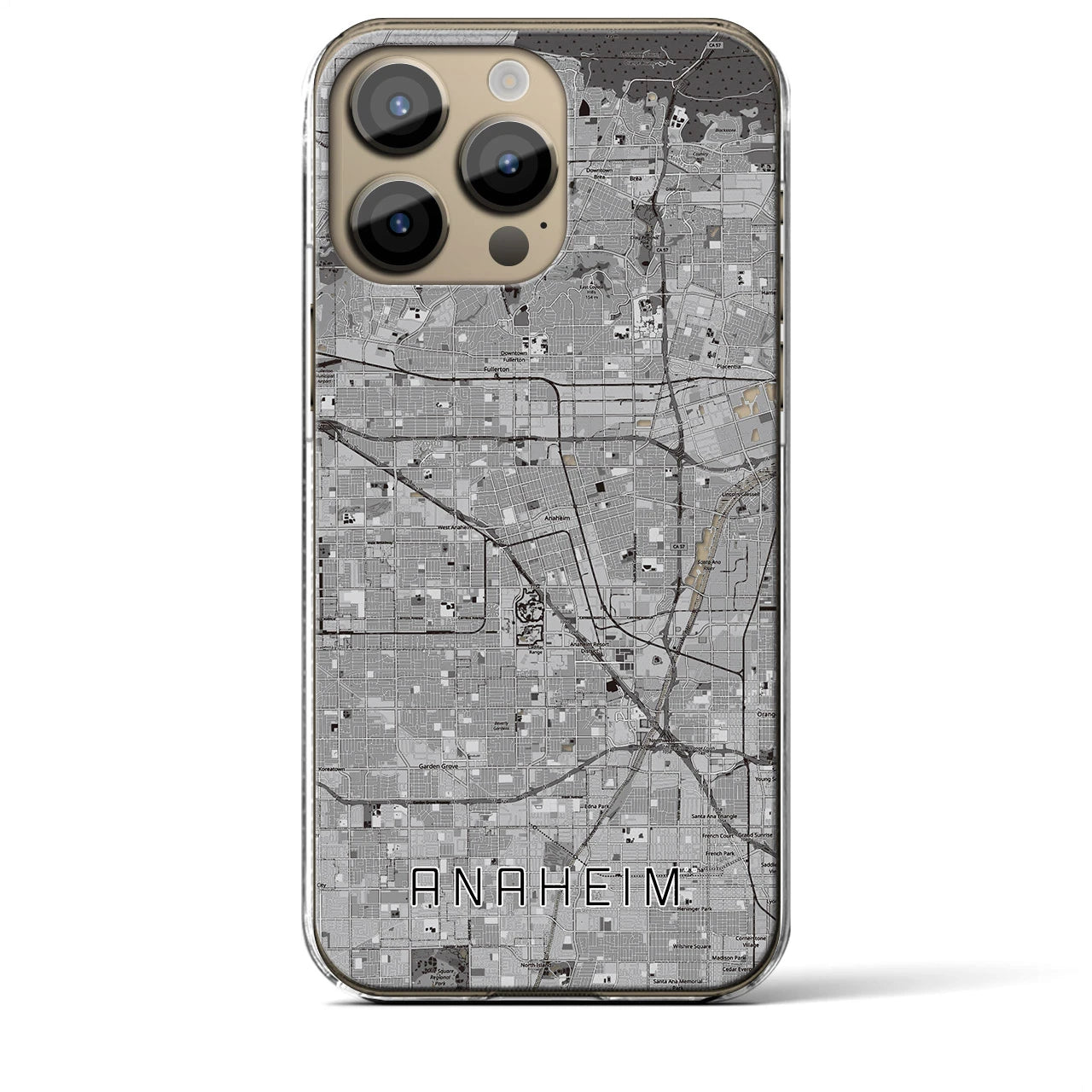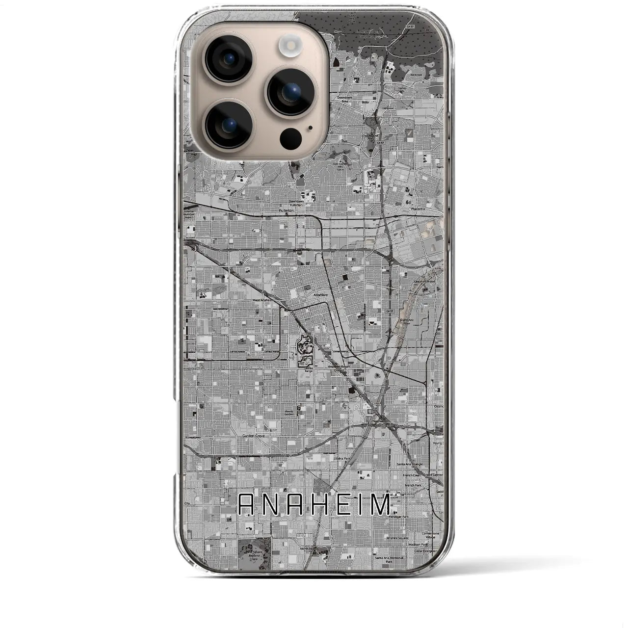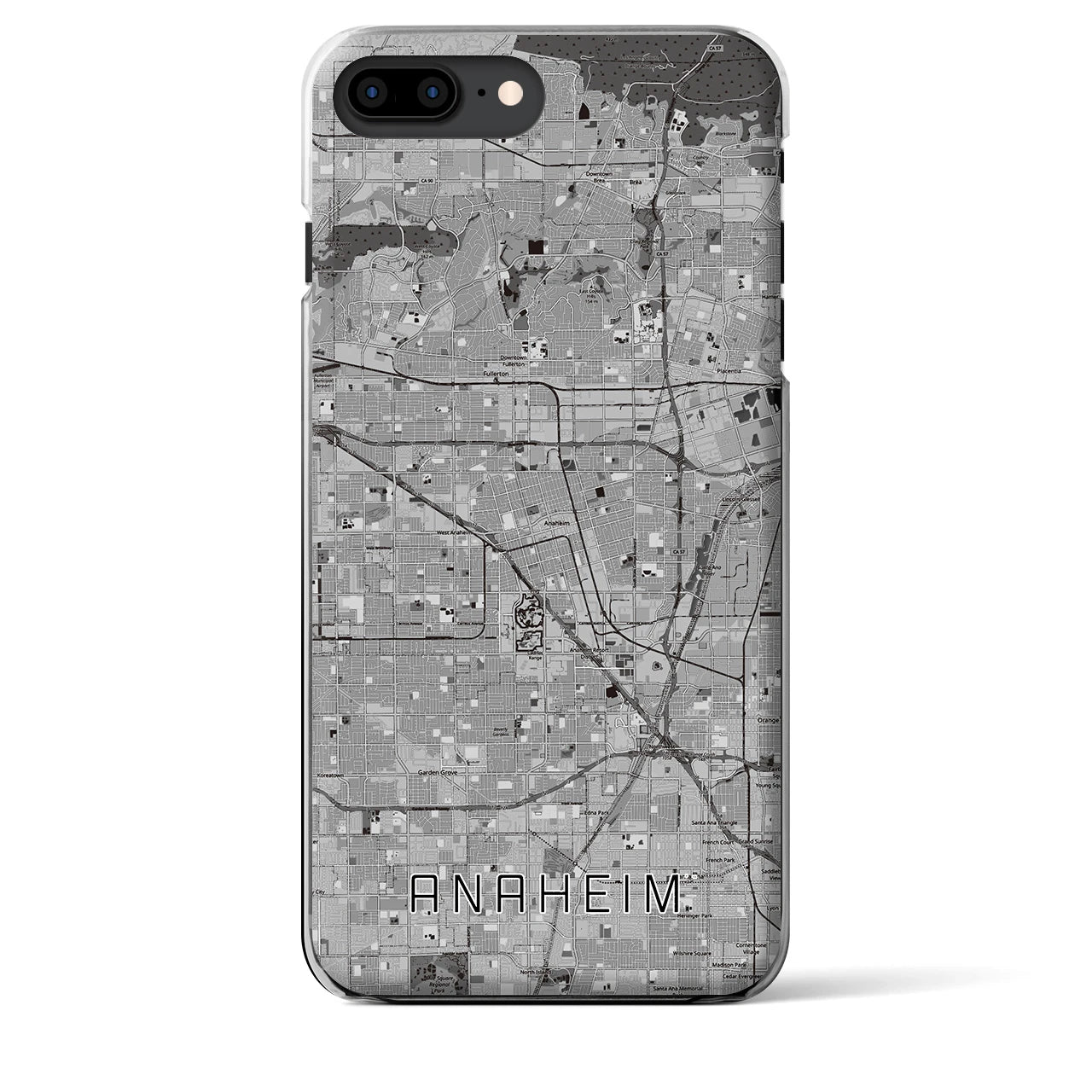 思い出の街、今を暮らす街、あなたが愛する「アナハイム」のクリアタイプ地図柄iPhoneケースです。厚みのある2層UVプリントで、「アナハイム」を手触りで感じることができます。