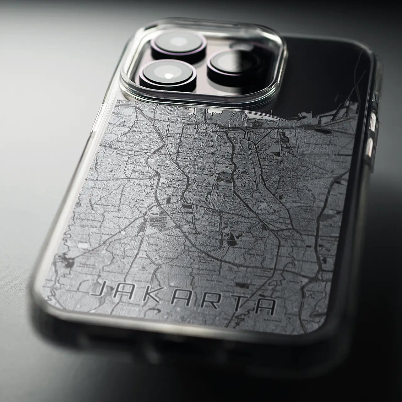 【ジャカルタ(インドネシア)】地図柄iPhoneケース(MagSafeタイプ)モノトーン・iPhone 16 Pro 用