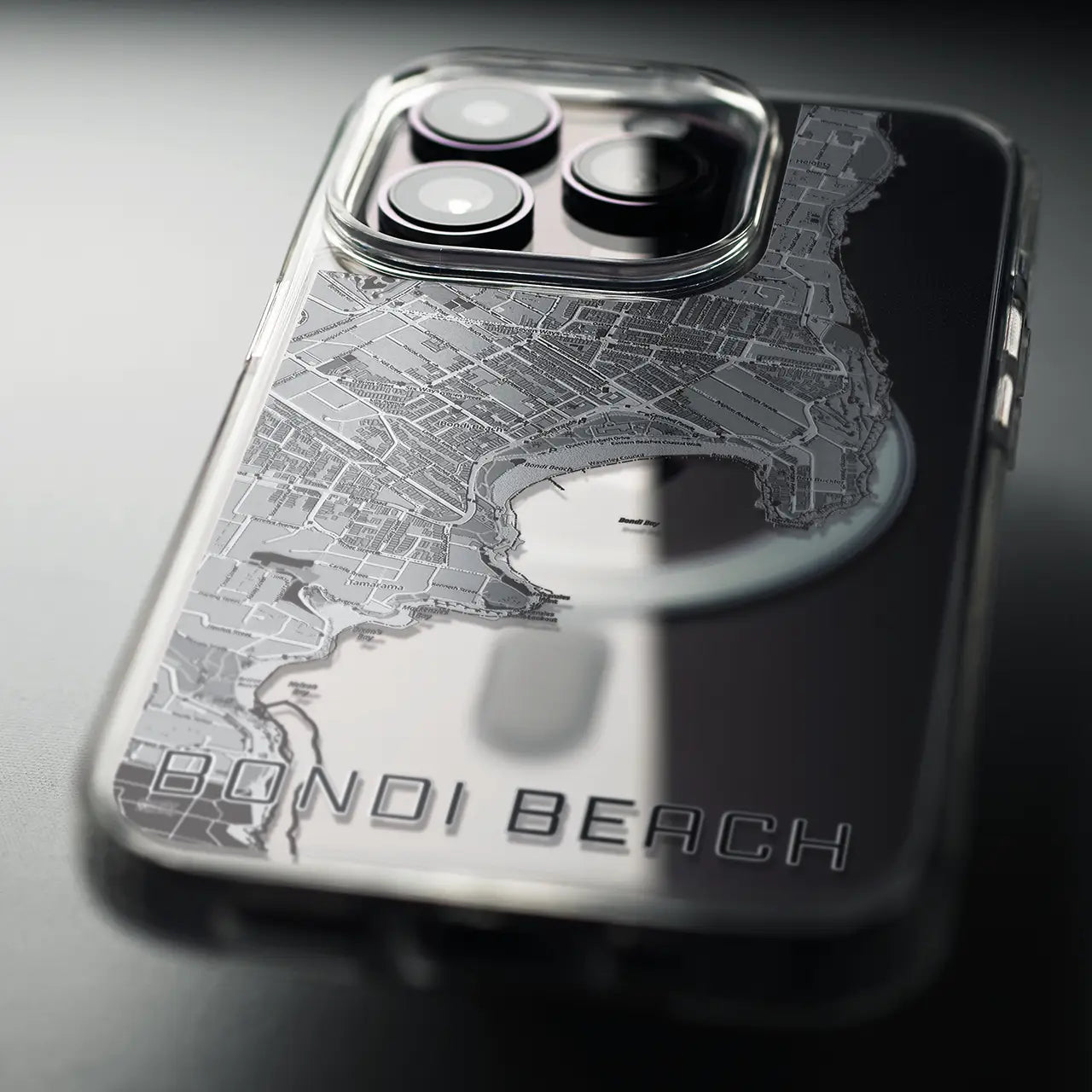 シドニーの中心地からほど近く、南太平洋に面する風光明媚な海岸がボンダイビーチです。「ボンダイ」とはアボリジニの言葉で岩を越え砕ける波を意味し、文字通り青い海と白波のコントラストが観光客や地元のサーファーを魅了しています。Appleが1998年に発売したiMacで特徴的な半透明の青いボディは「ボンダイブルー」と名付けられ、その名が広く知られることとなりました。あなたが愛する「ボンダイビーチ」のMagSafeタイプ地図柄iPhoneケースです。ワンランク上のクオリティで、あなたの街「ボンダイビーチ」への愛着も一層深まります。