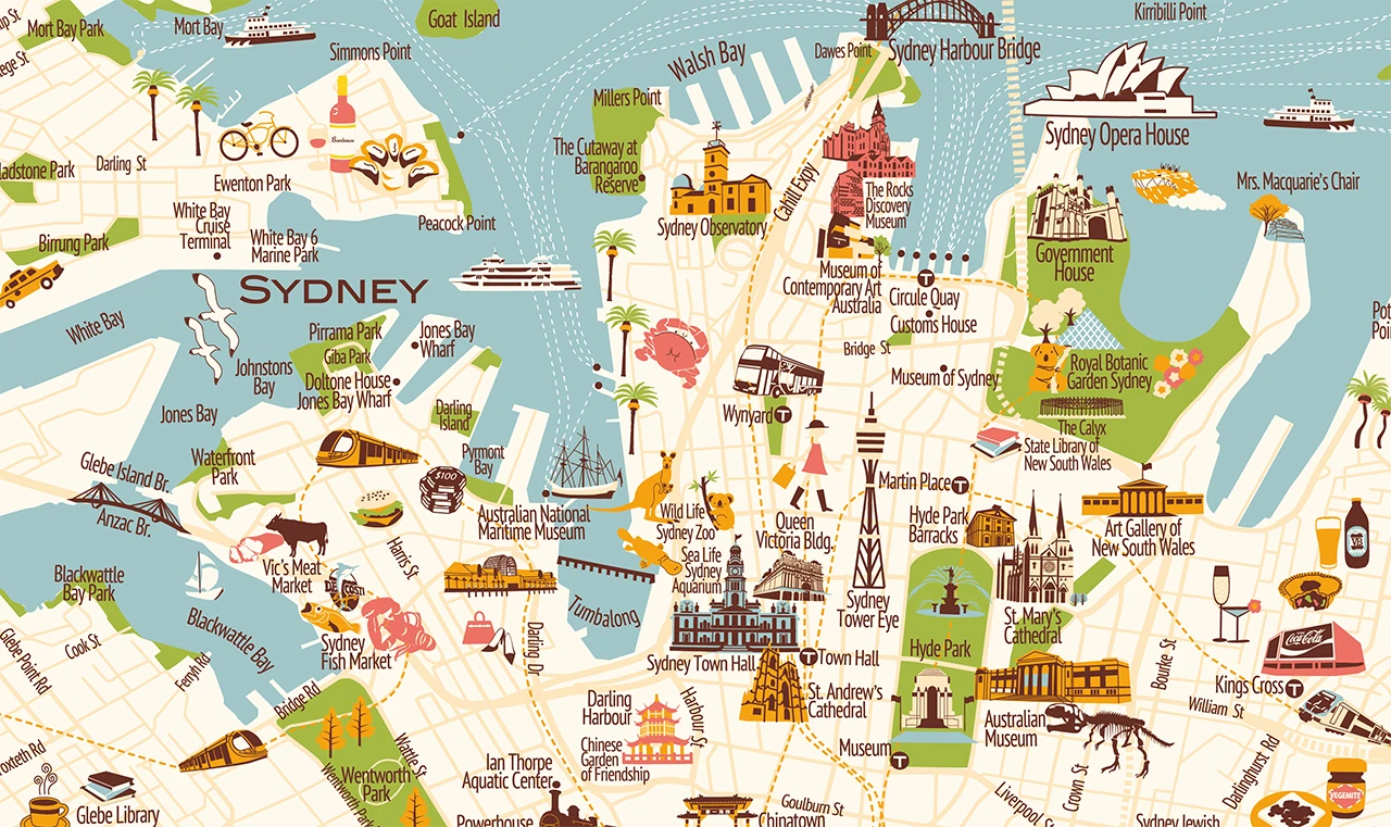 totemapとのコラボレーションで生まれたシドニーのカラフルな地図柄Tシャツです。