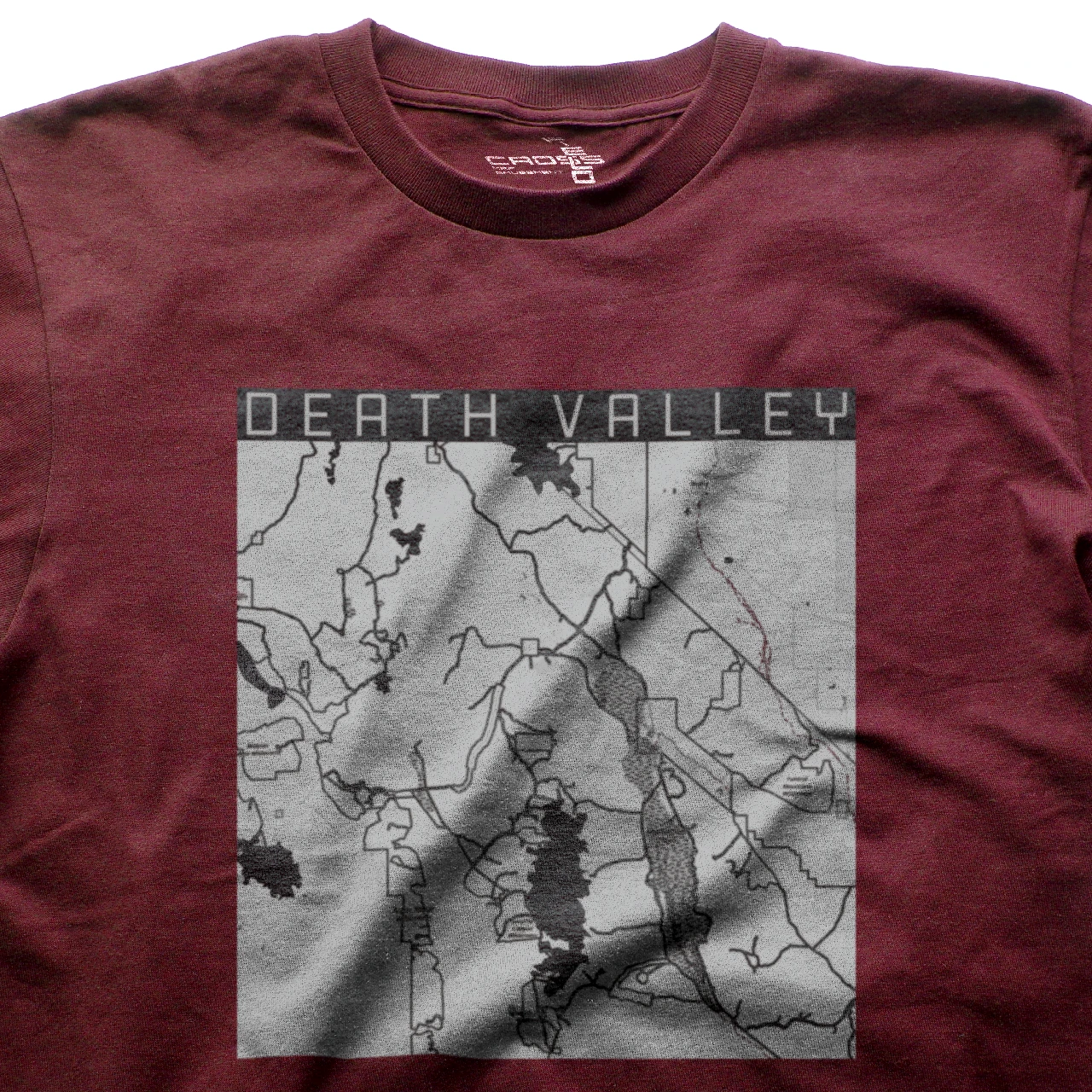 果てしなく続く直線道路は、アメリカ西部の広大さを象徴する風景です。かつて西部開拓時代、開拓者たちはこの荒野の先、デスヴァレーを越えて西へと向かいました。灼熱のデスヴァレーは過酷な通過点でしたが、その先にはゴールドラッシュに沸き立つ西海岸が待っていたのです。今もなお真っ直ぐに伸びる道を走れば、大地の果てに夢を抱いた開拓者たちの足跡が静かに語りかけます。あなたが愛する街「デスヴァレー」の地図柄Tシャツが登場しました。5.6オンスのタフなボディにモノトーンプリントされた地図は海や川の部分に生地色が覗き、街のシルエットが際立つデザインです。