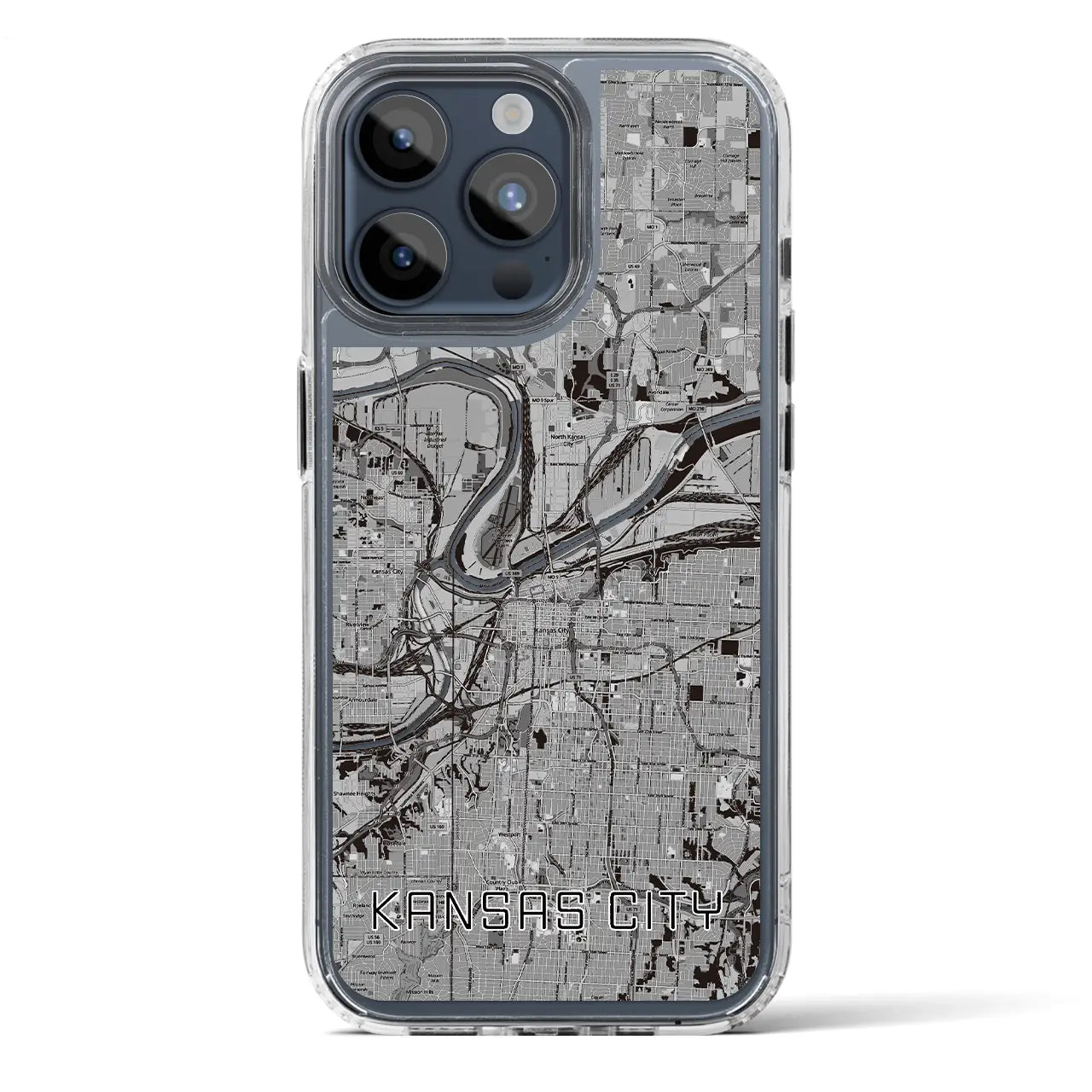 【カンザスシティ(アメリカ)】地図柄iPhoneケース(MagSafeタイプ)モノトーン・iPhone 16 Pro 用