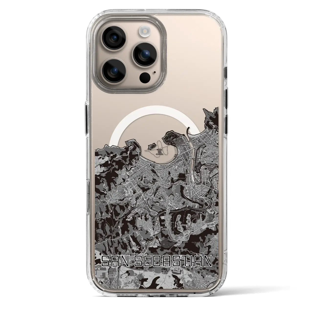 【サン・セバスティアン(スペイン)】地図柄iPhoneケース(MagSafeタイプ)モノトーン・iPhone 16 Pro 用