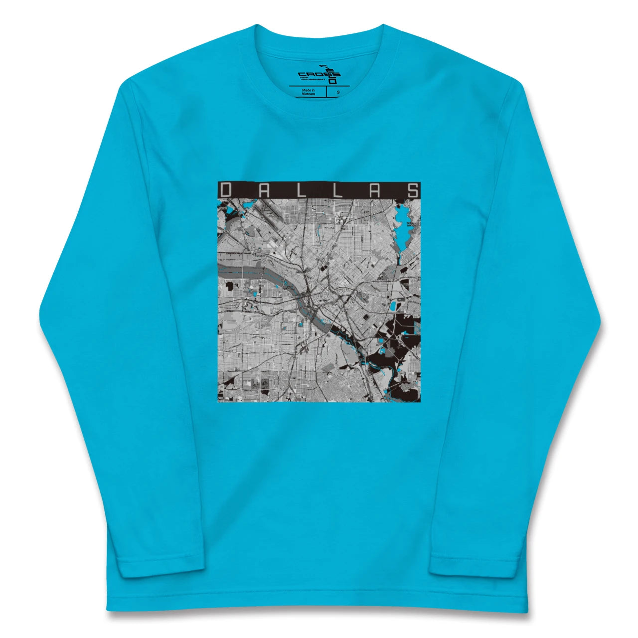 幅広いシーズンにフィットする長袖Tシャツにあなたの街「ダラス」のモノトーンマップをプリントしました。