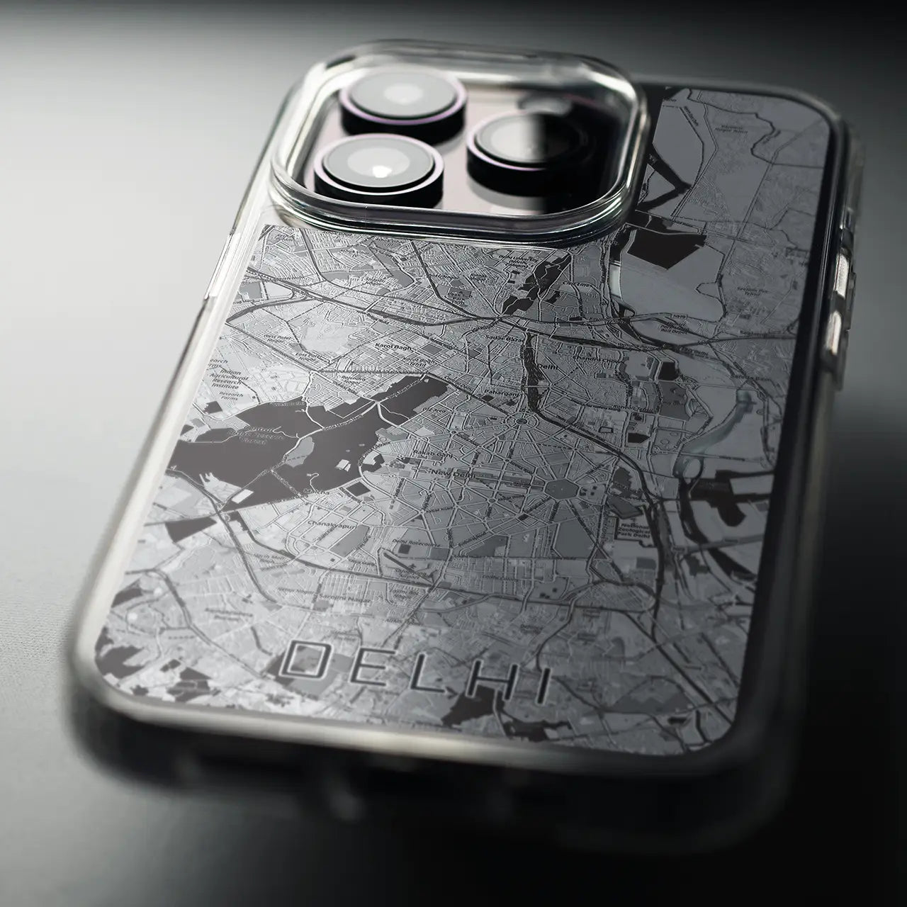 【デリー(インド)】地図柄iPhoneケース(MagSafeタイプ)モノトーン・iPhone 16 Pro 用