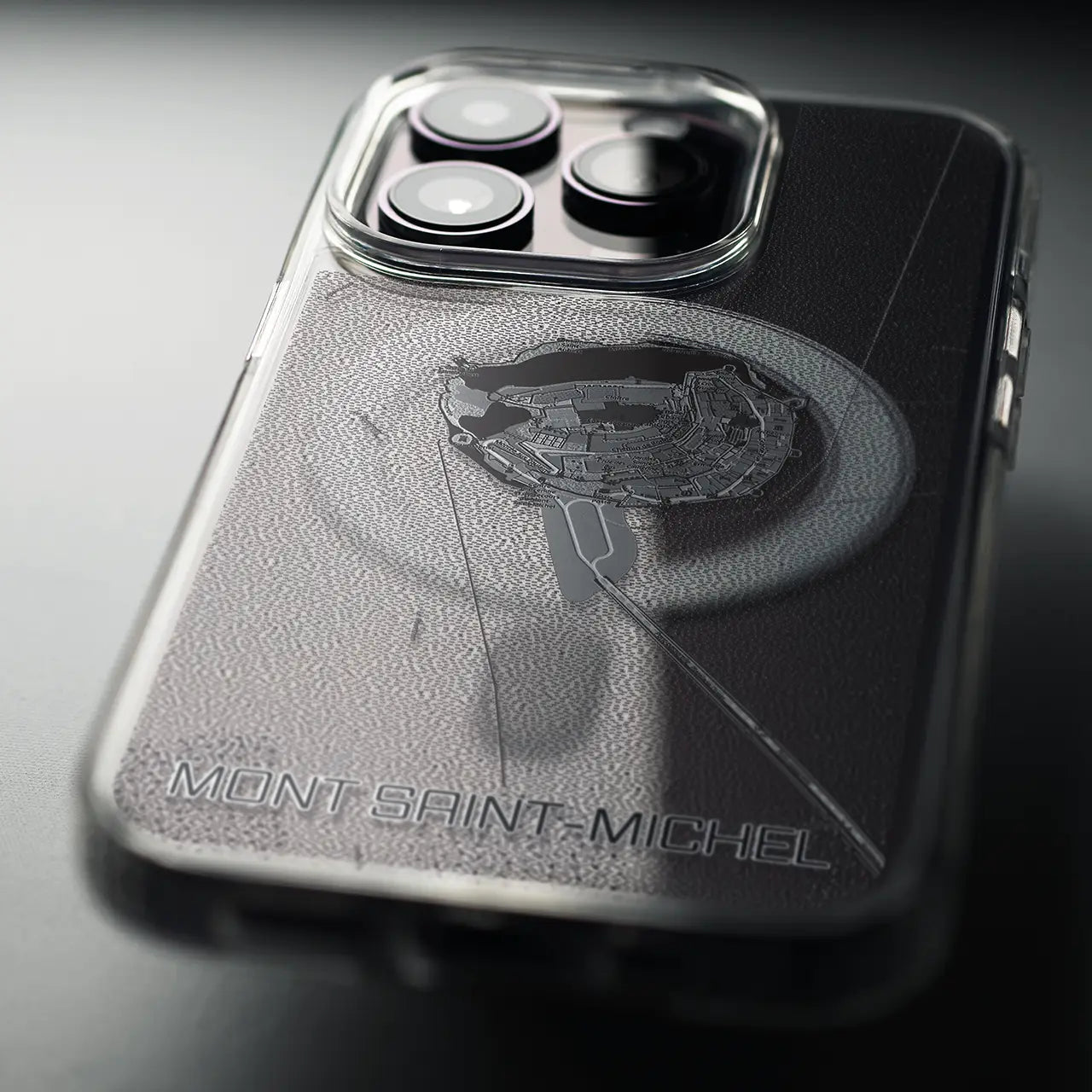 【モン・サン=ミシェル(フランス)】地図柄iPhoneケース(MagSafeタイプ)モノトーン・iPhone 16 Pro 用