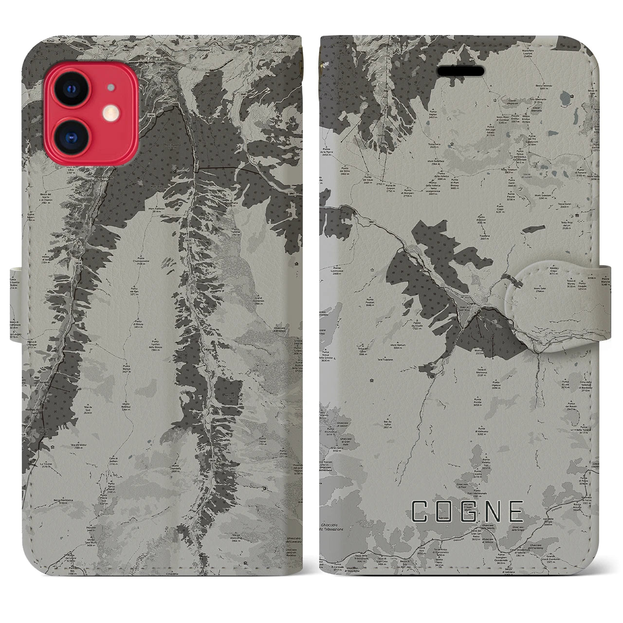 【コーニュ(イタリア)】地図柄iPhoneケース(手帳タイプ)モノトーン・iPhone 11 用