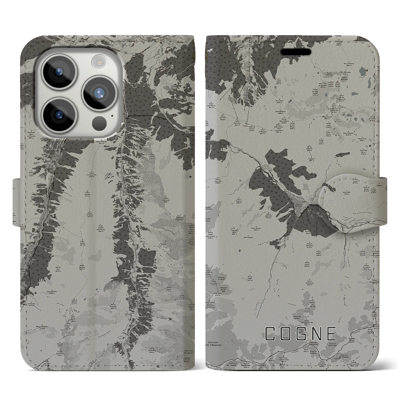 【コーニュ(イタリア)】地図柄iPhoneケース(手帳タイプ)モノトーン・iPhone 15 Pro Max 用