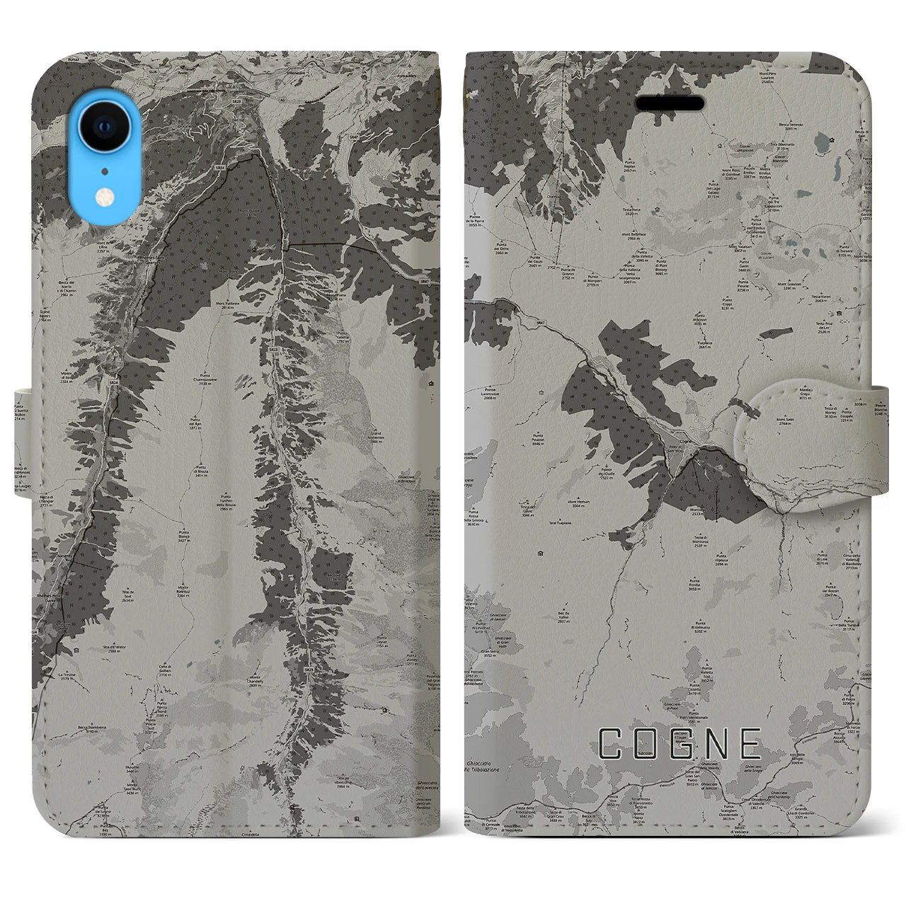 【コーニュ(イタリア)】地図柄iPhoneケース(手帳タイプ)モノトーン・iPhone XR 用
