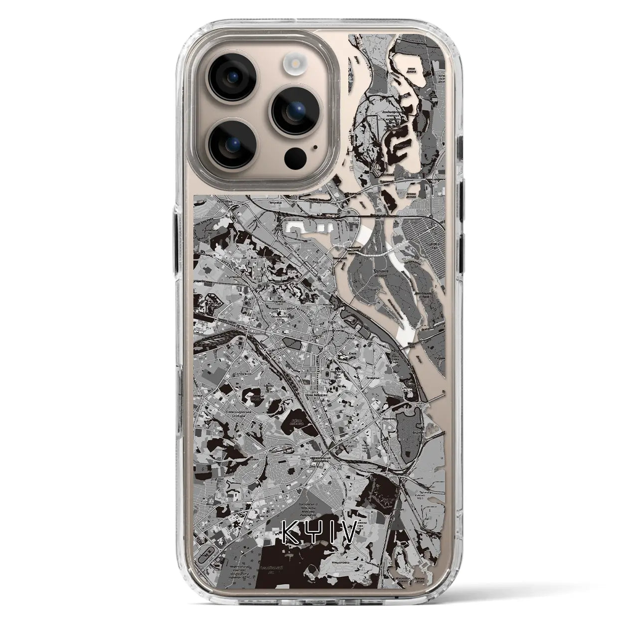 【キーウ(ウクライナ)】地図柄iPhoneケース(MagSafeタイプ)モノトーン・iPhone 16 Pro 用
