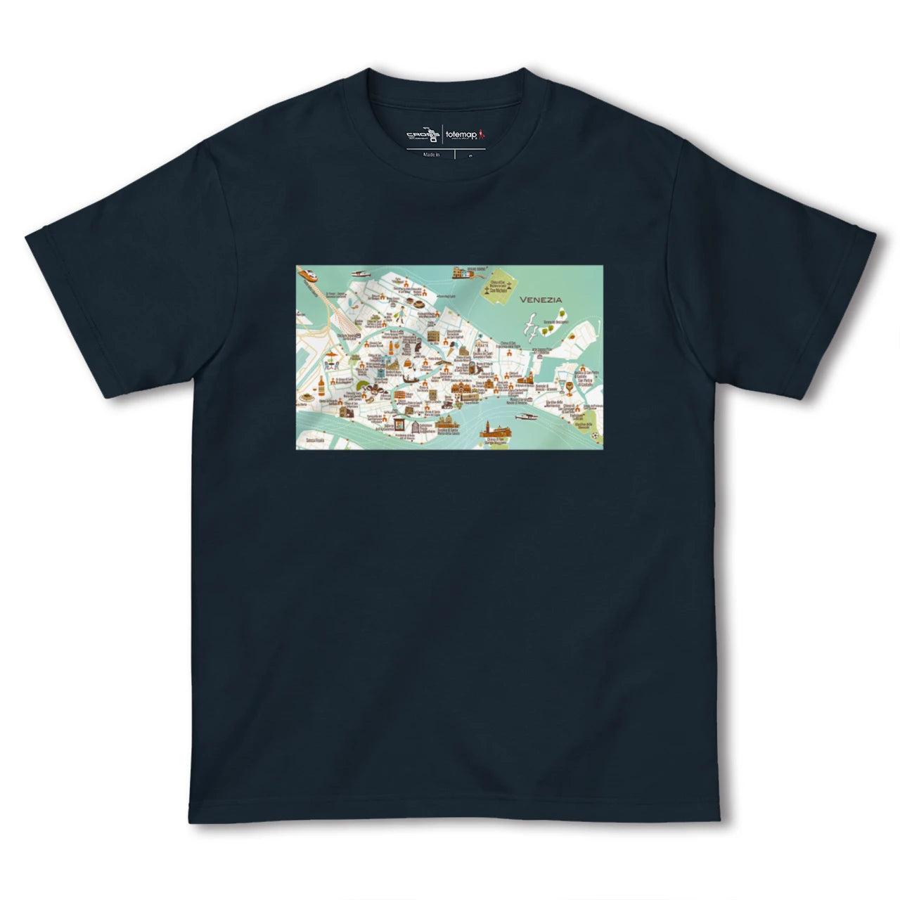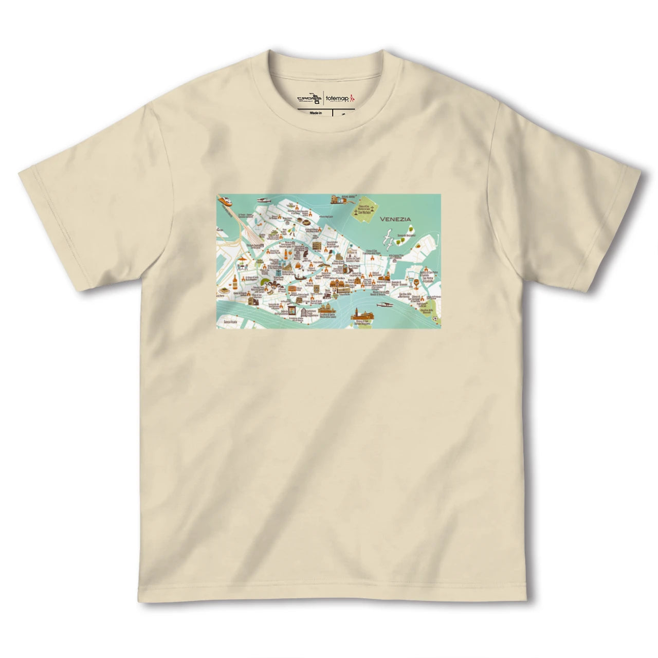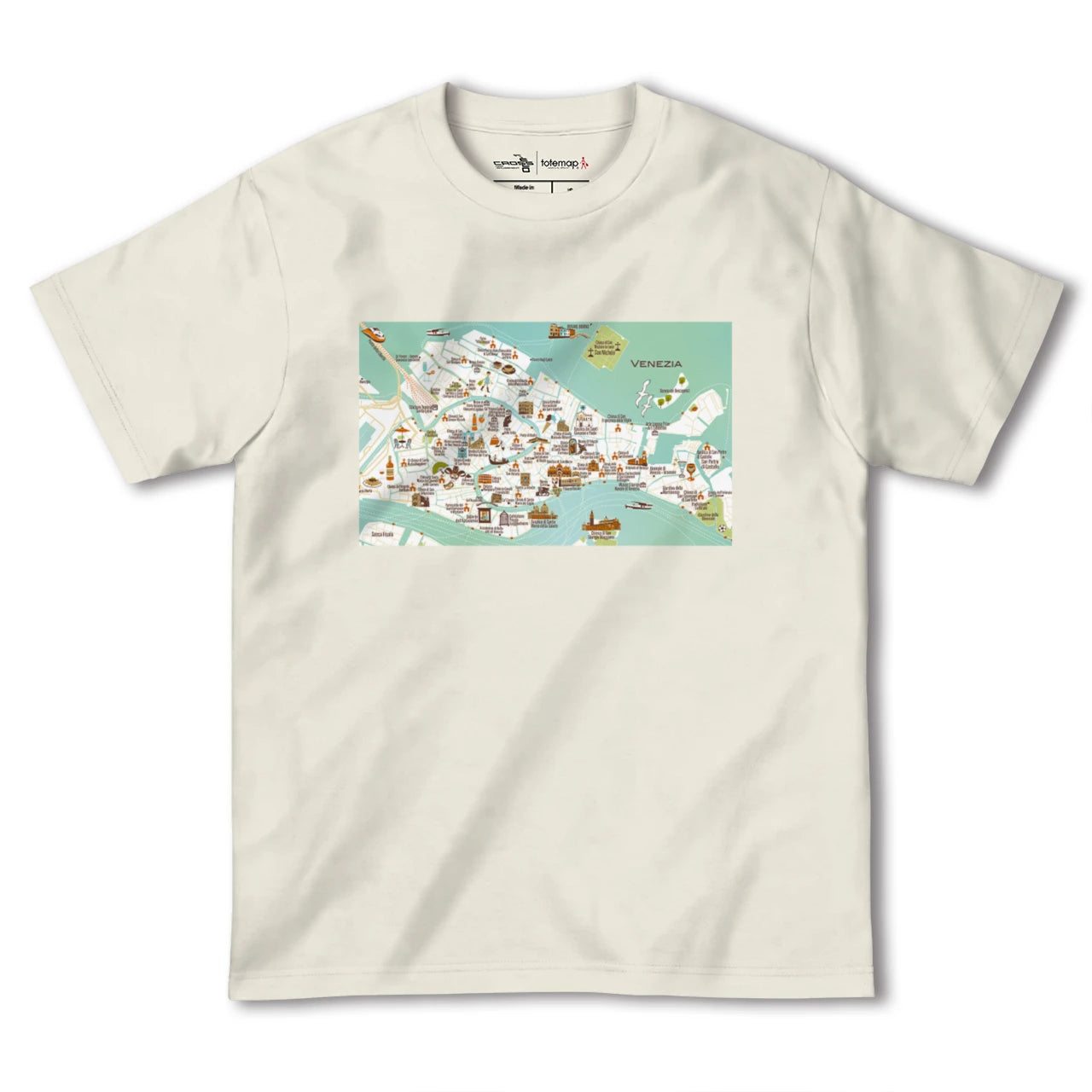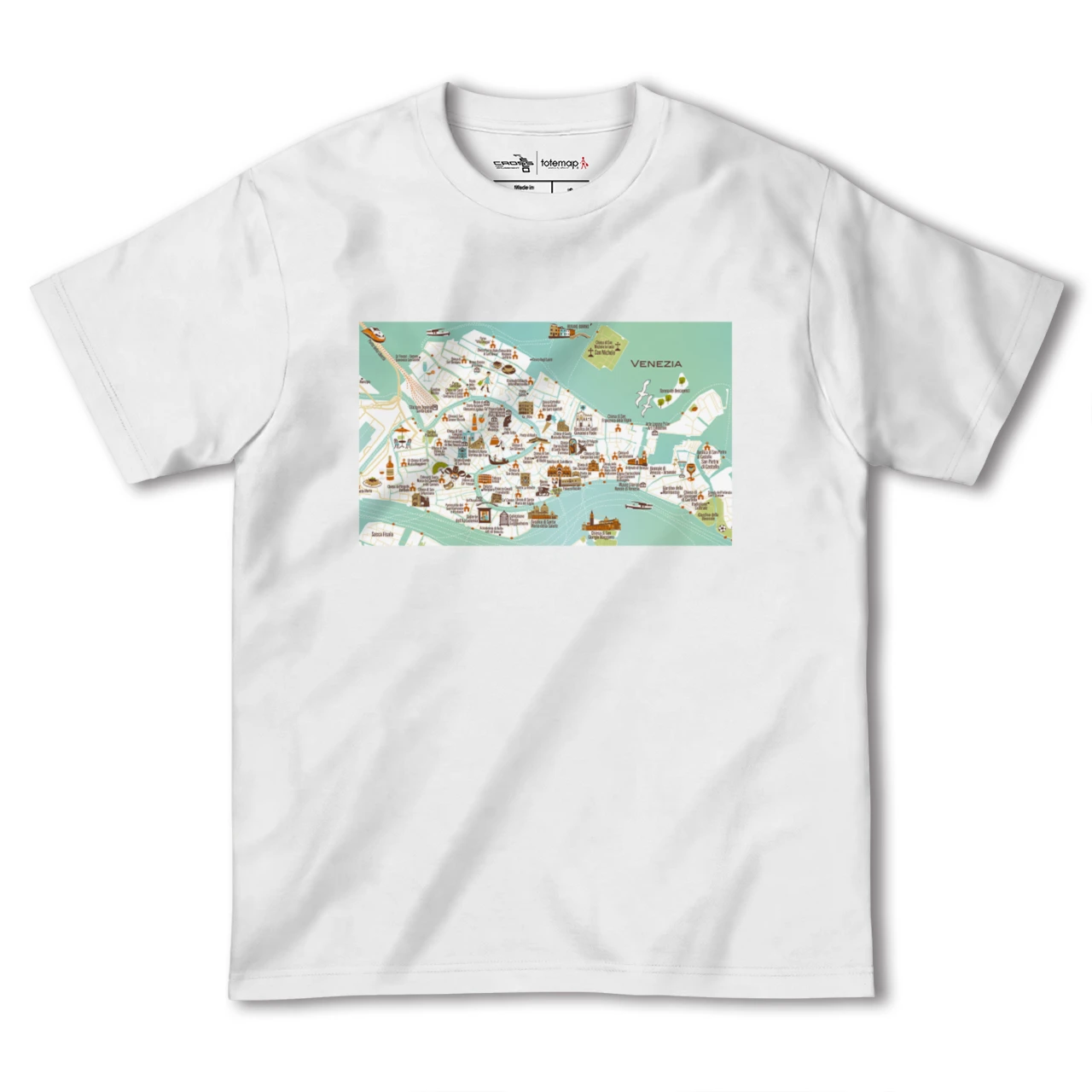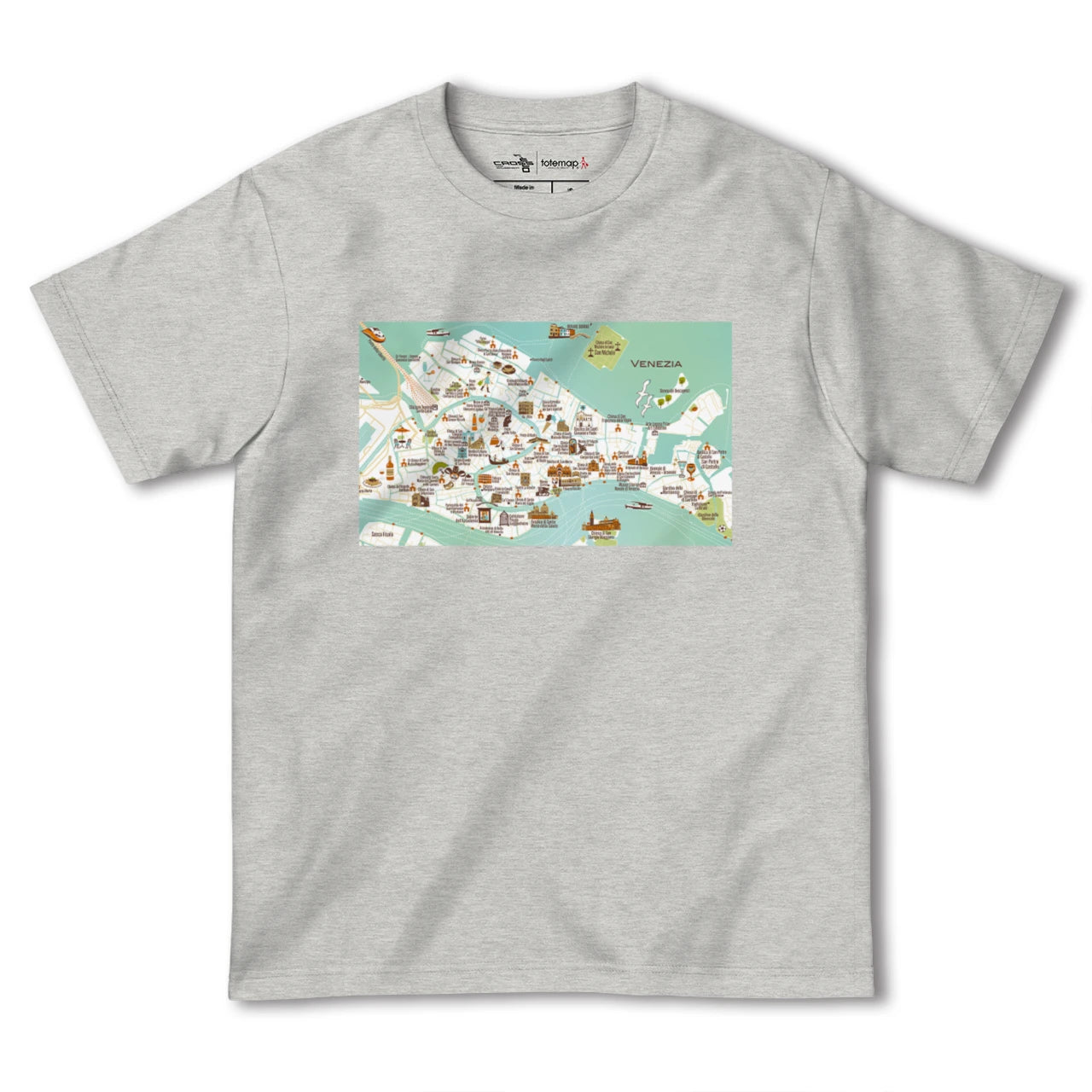 totemapとのコラボレーションで生まれたヴェネツィアのカラフルな地図柄Tシャツです。