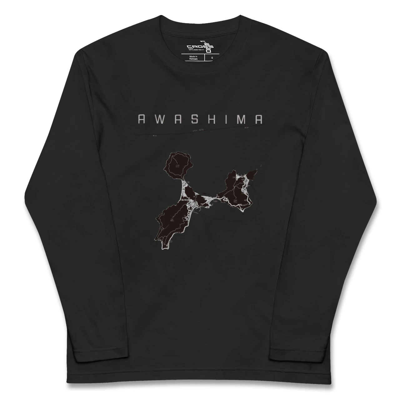 幅広いシーズンにフィットする長袖Tシャツにあなたの街「粟島」のモノトーンマップをプリントしました。
