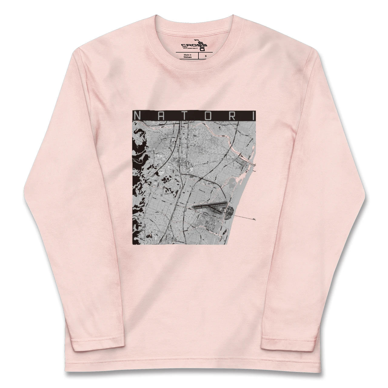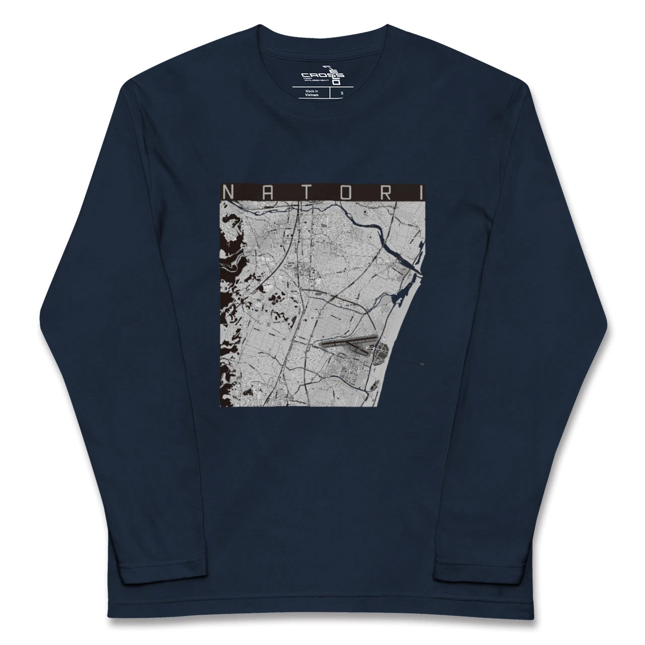 幅広いシーズンにフィットする長袖Tシャツにあなたの街「名取」のモノトーンマップをプリントしました。