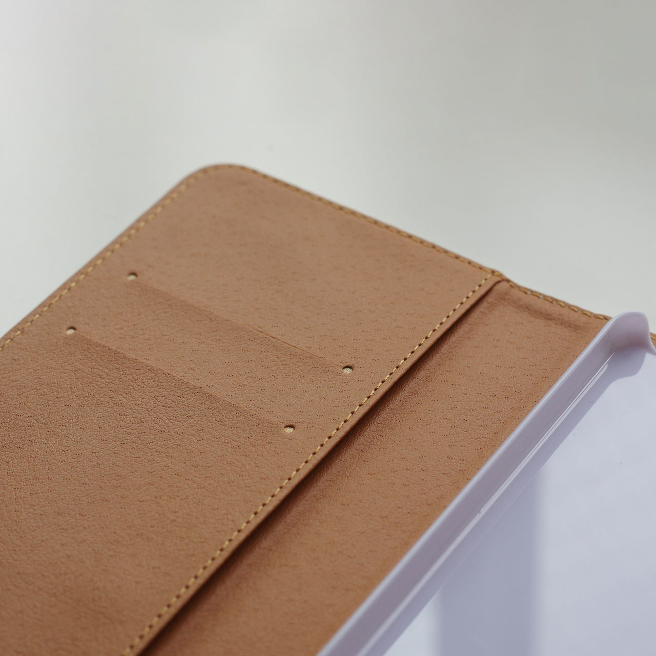 - Android用はiPhone用と一部仕様が異なます。フラップの形状が変更となり内面がブラウン仕上げでポケットの数が変更となります。またスタンド機能はありません。写真にてご確認ください。
