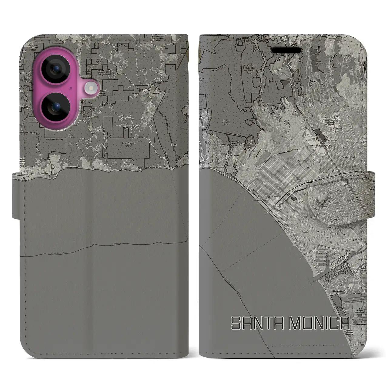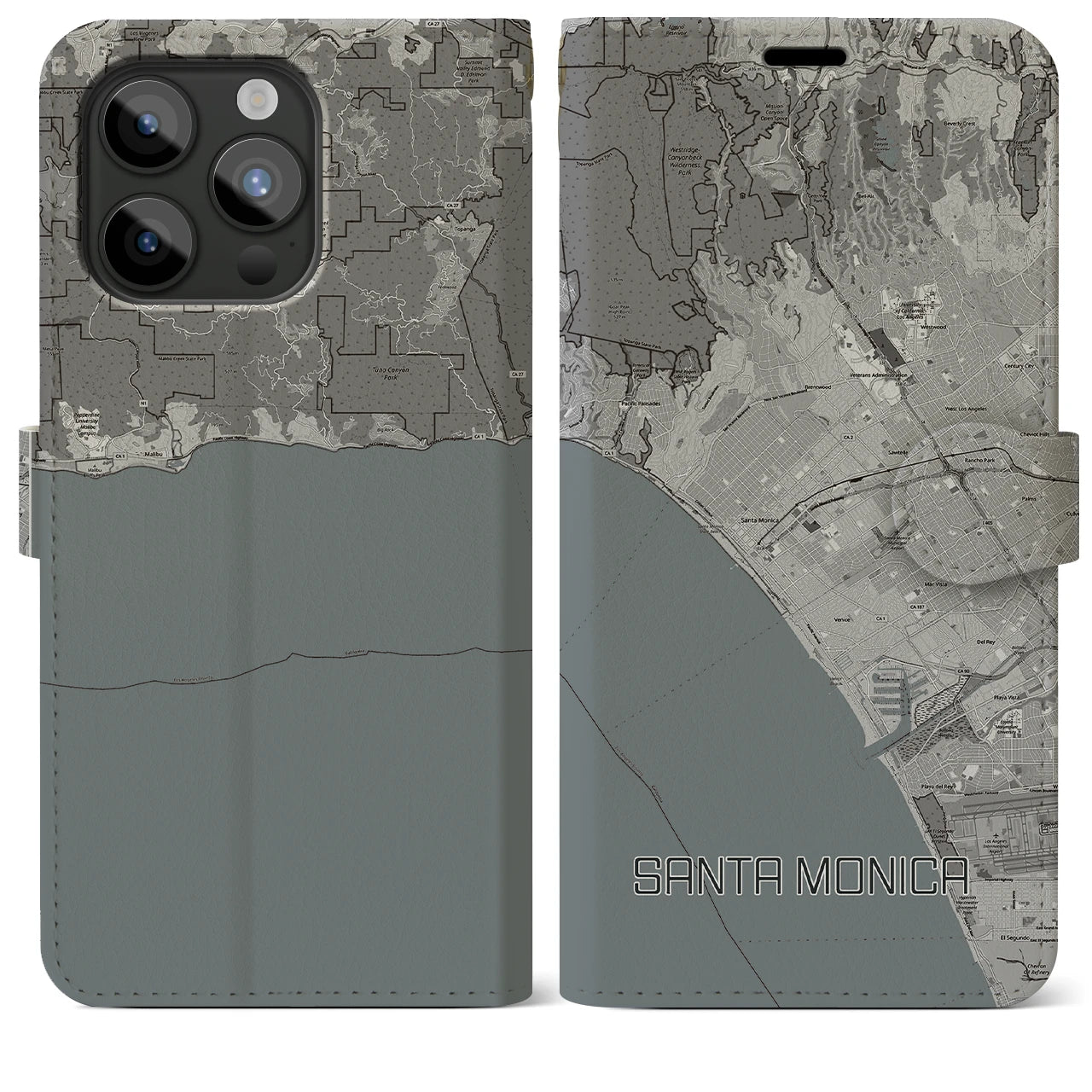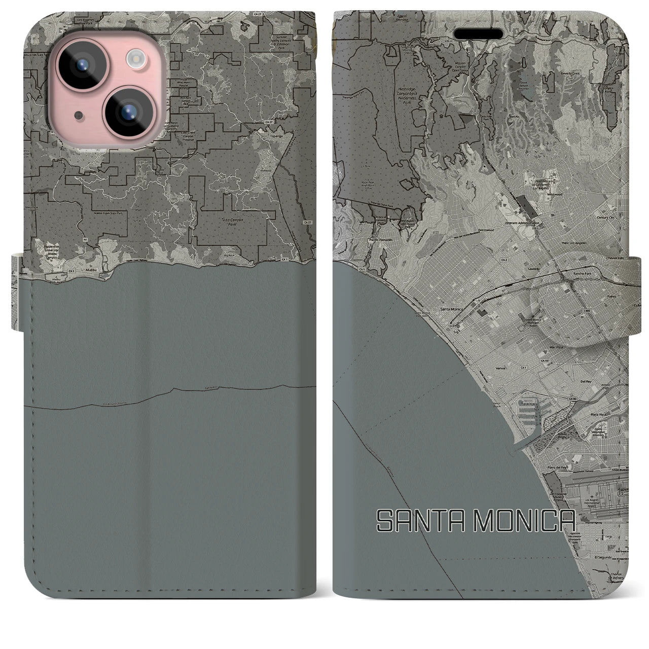 思い出の街、今を暮らす街、あなたが愛する「サンタモニカ」の手帳タイプ地図柄iPhoneケースです。両面にまたがる大きなプリントで、離れていても「サンタモニカ」をいつも身近に感じさせてくれます。