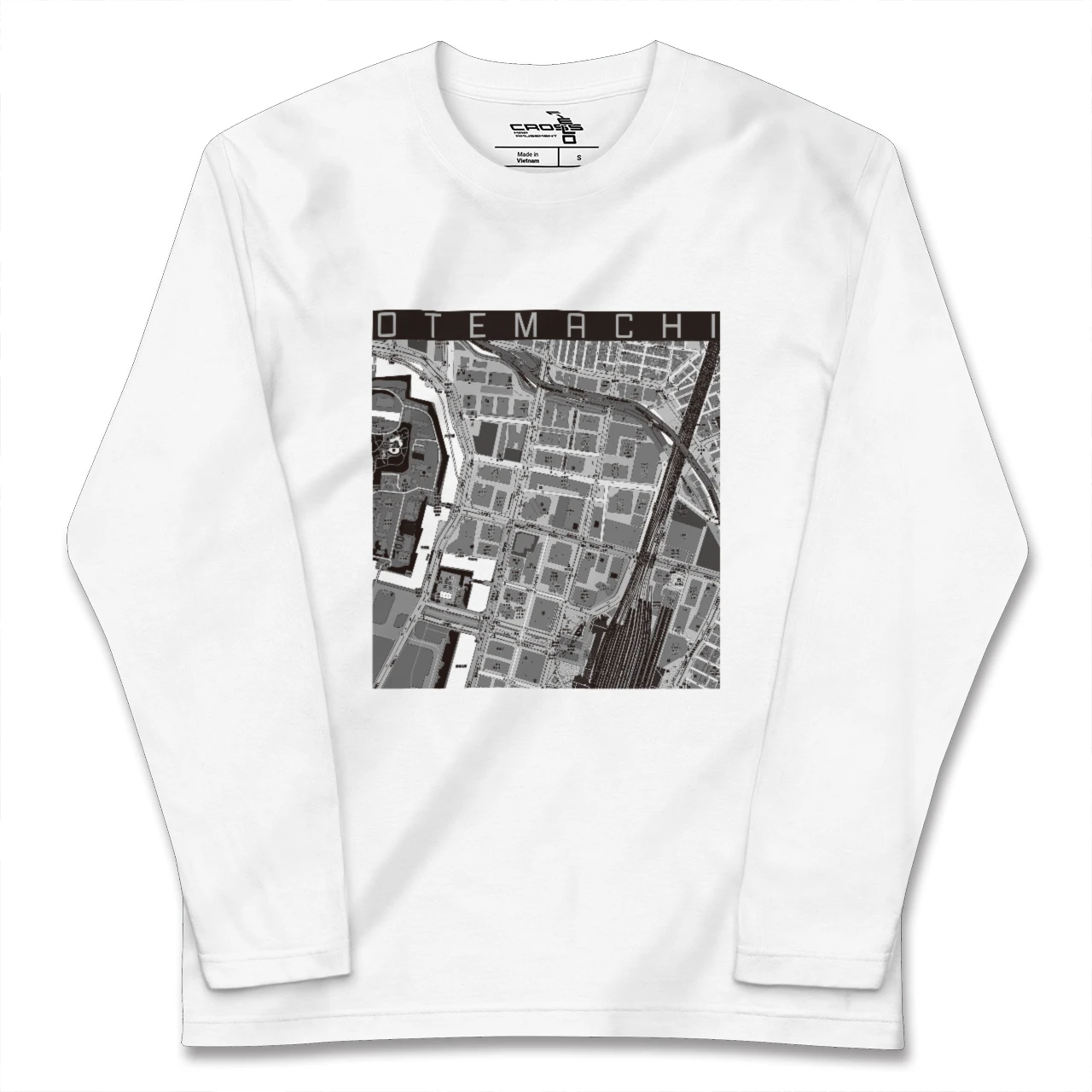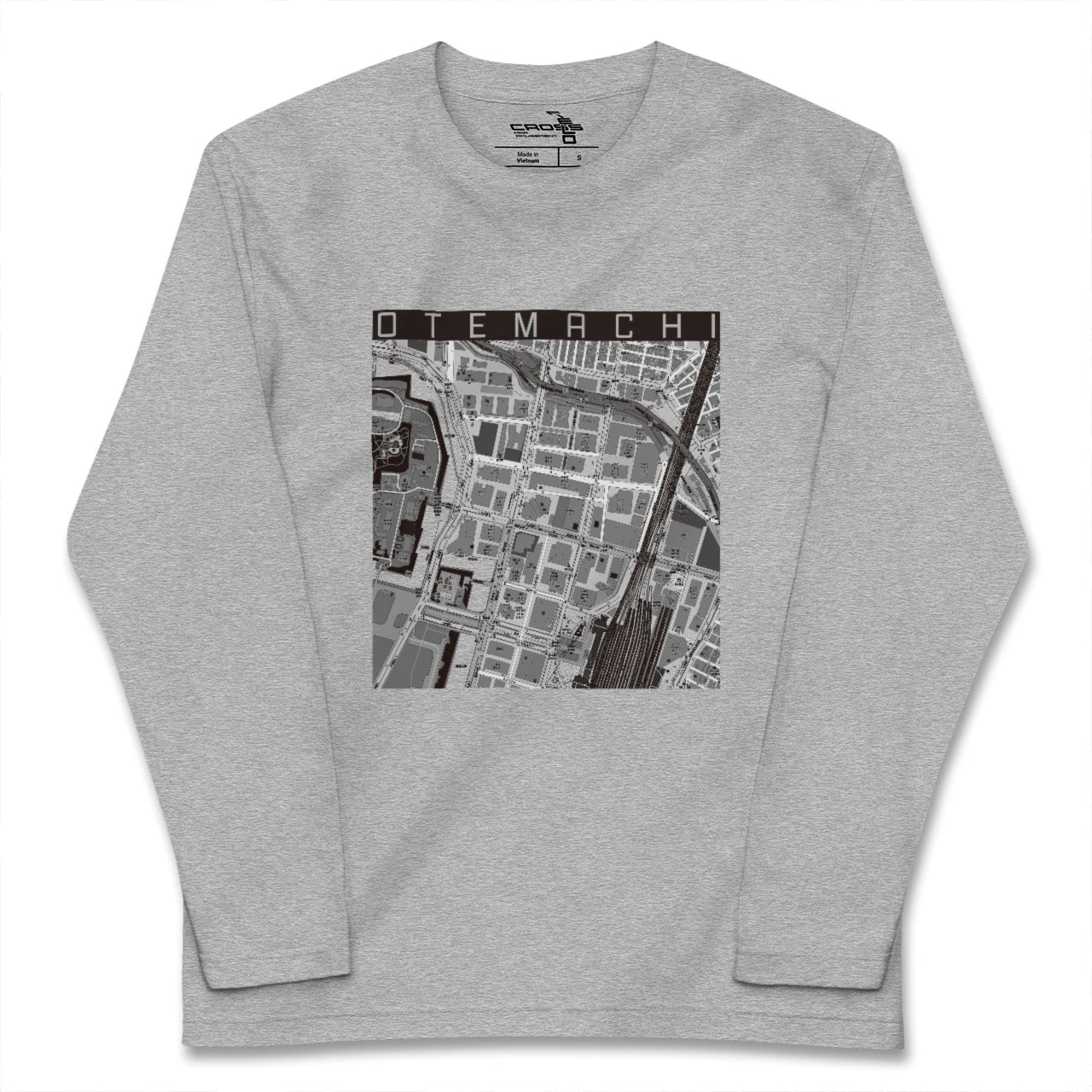 幅広いシーズンにフィットする長袖Tシャツにあなたの街「大手町」のモノトーンマップをプリントしました。