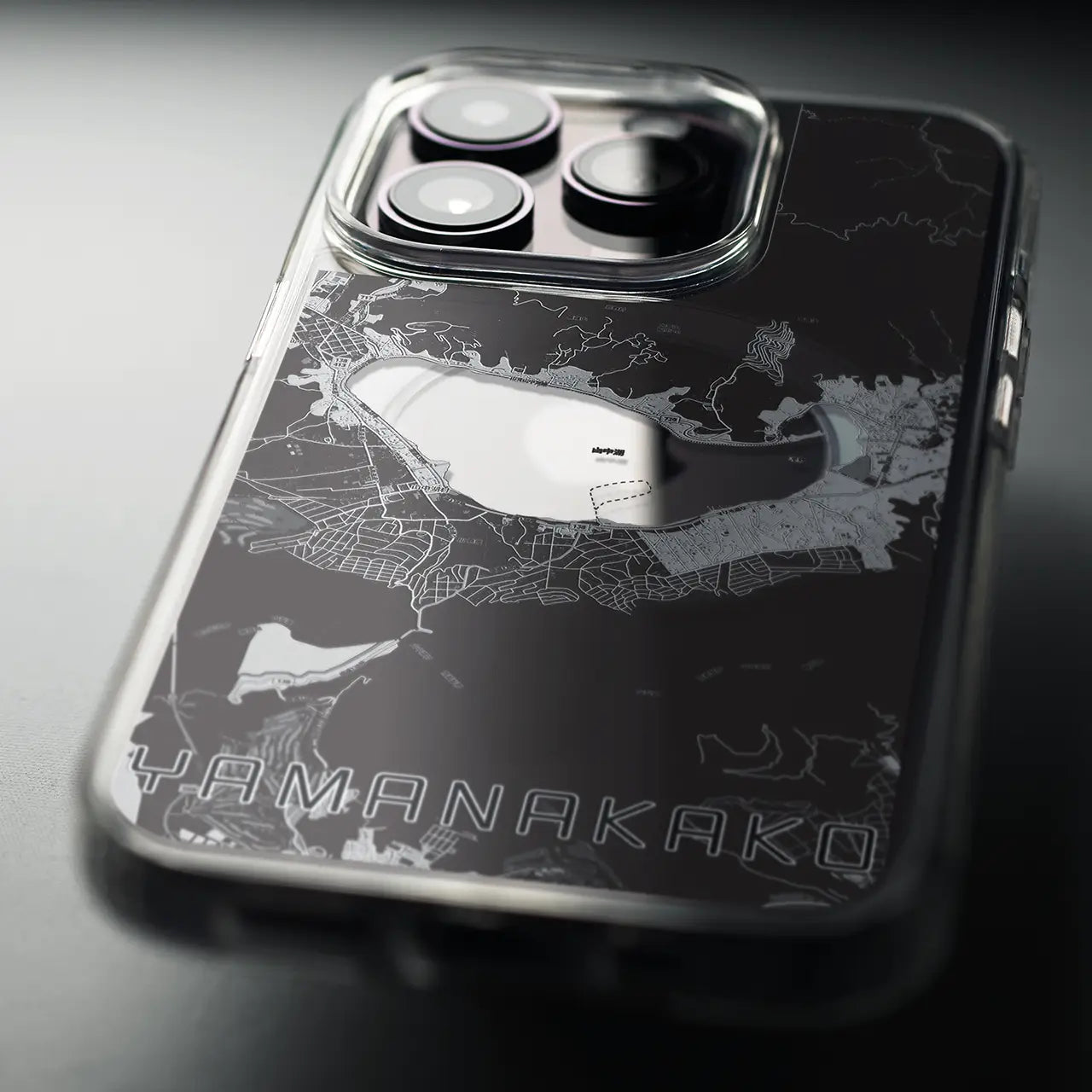 【山中湖(山梨県)】地図柄iPhoneケース(MagSafeタイプ)モノトーン・iPhone 16 Pro 用