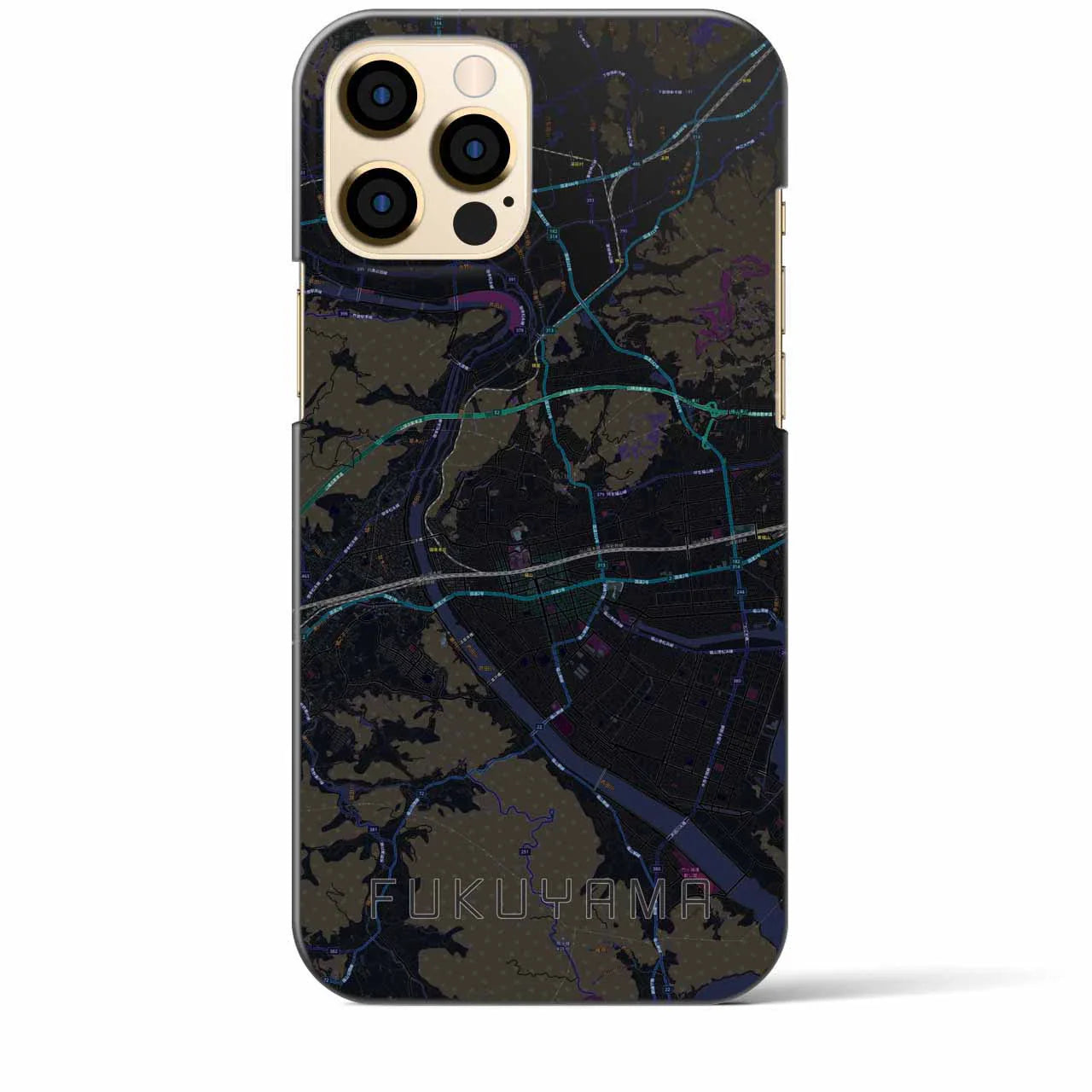 【福山(広島県)】地図柄iPhoneケース(バックカバータイプ)ブラック・iPhone 16 Pro Max 用