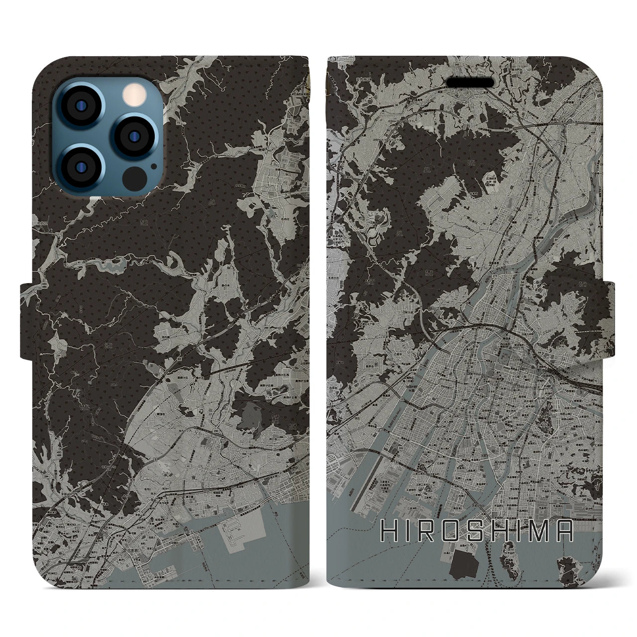【広島(広島県)】地図柄iPhoneケース(手帳タイプ)モノトーン・iPhone 12 Pro Max 用