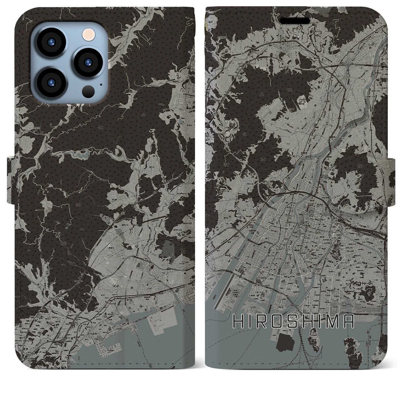 【広島(広島県)】地図柄iPhoneケース(手帳タイプ)モノトーン・iPhone 13 Pro Max 用