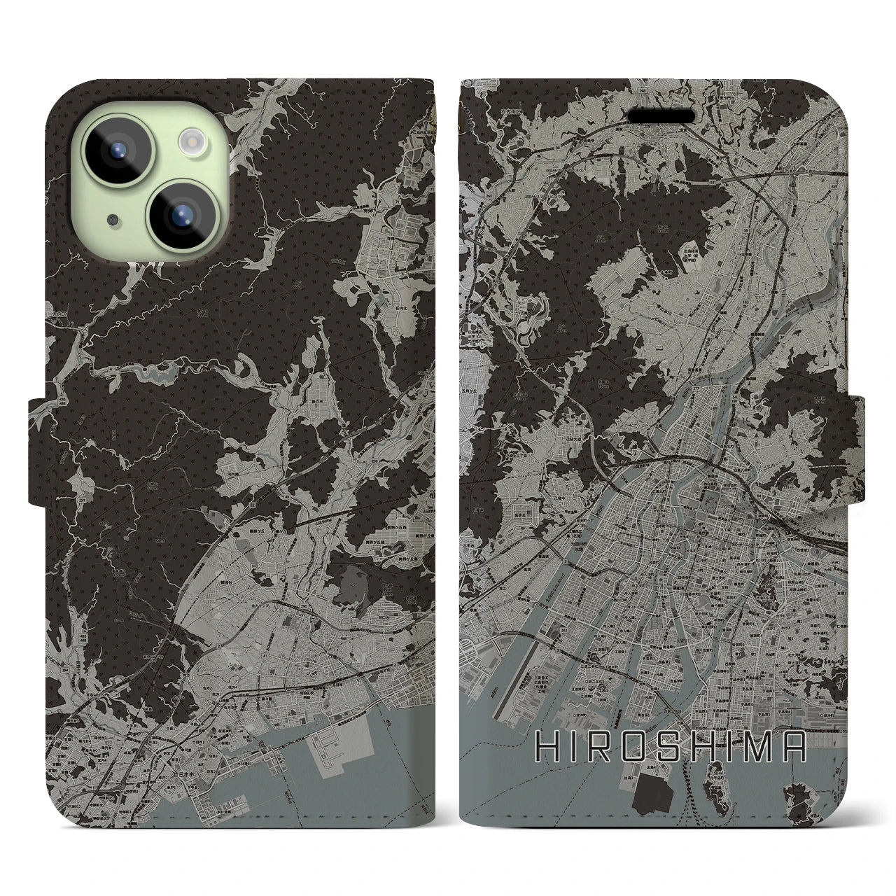 【広島(広島県)】地図柄iPhoneケース(手帳タイプ)モノトーン・iPhone 15 Plus 用