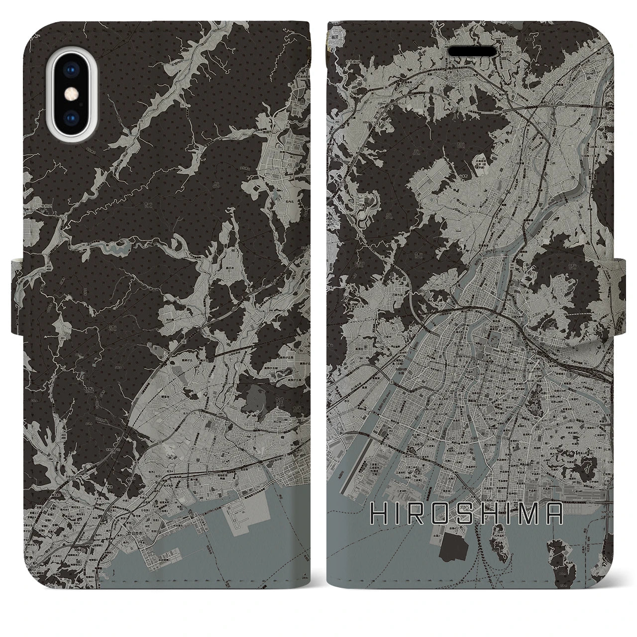 【広島(広島県)】地図柄iPhoneケース(手帳タイプ)モノトーン・iPhone XS Max 用