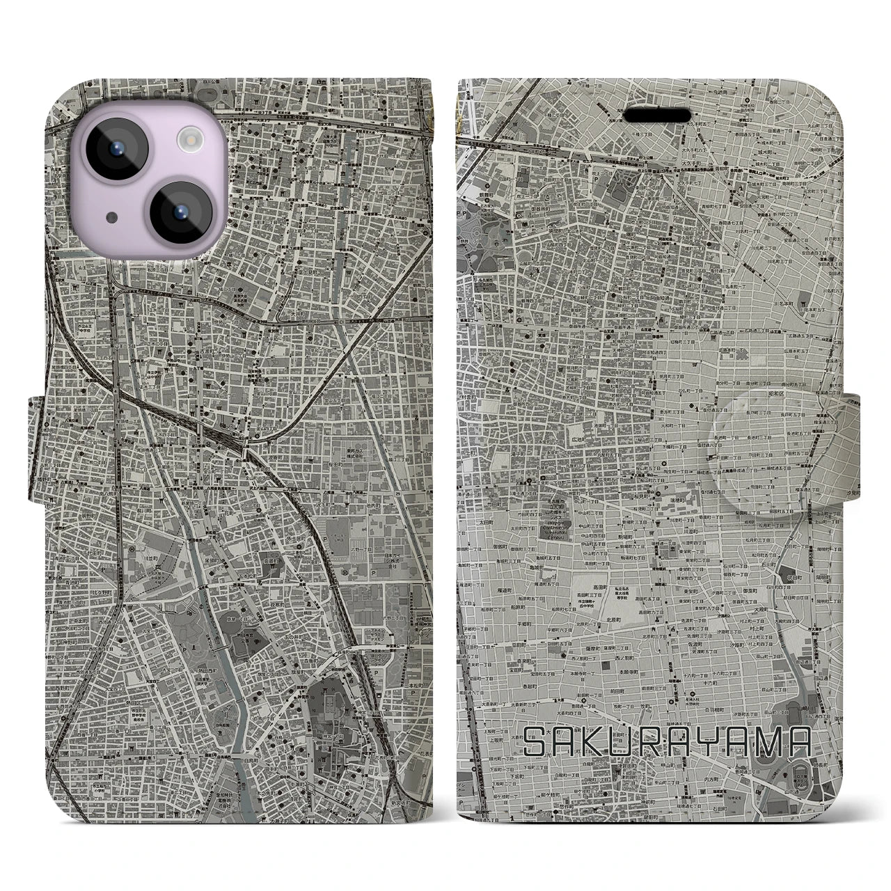 思い出の街、今を暮らす街、あなたが愛する「桜山」の手帳タイプ地図柄iPhoneケースです。両面にまたがる大きなプリントで、離れていても「桜山」をいつも身近に感じさせてくれます。