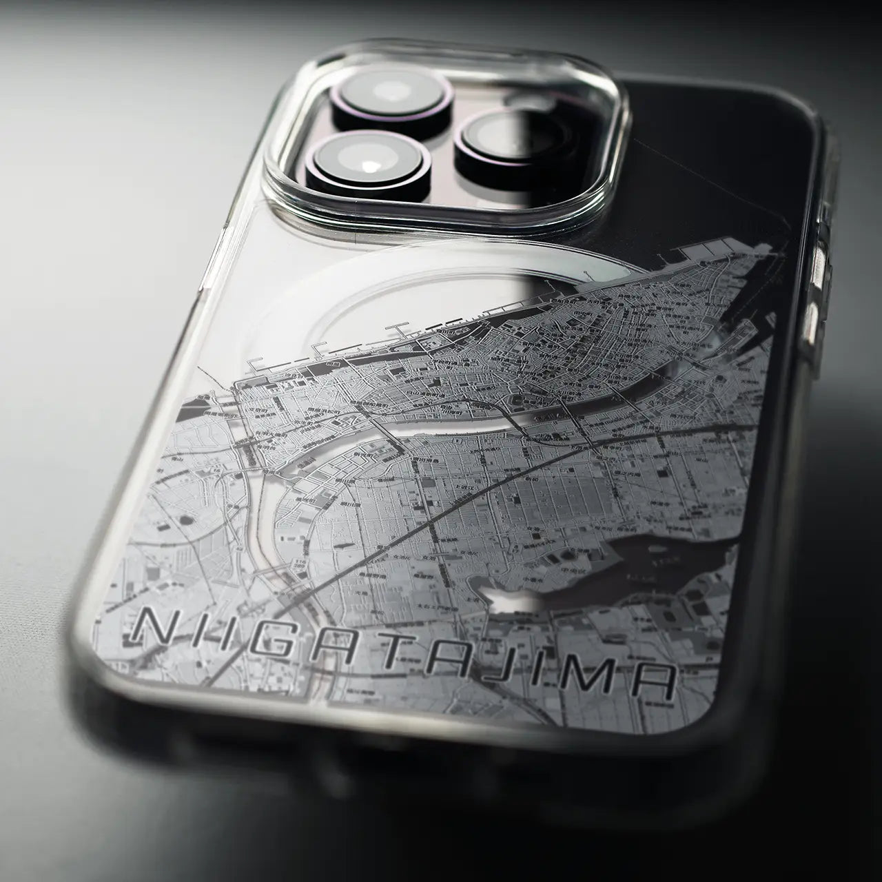 【新潟島(新潟県)】地図柄iPhoneケース(MagSafeタイプ)モノトーン・iPhone 16 Pro 用