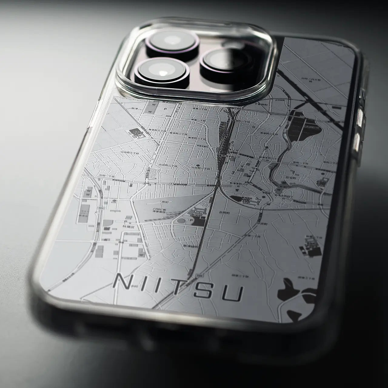 【新津(新潟県)】地図柄iPhoneケース(MagSafeタイプ)モノトーン・iPhone 16 Pro 用