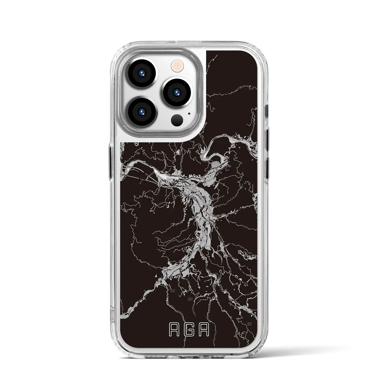 【阿賀(新潟県)】地図柄iPhoneケース(MagSafeタイプ)モノトーン・iPhone 16 Pro 用