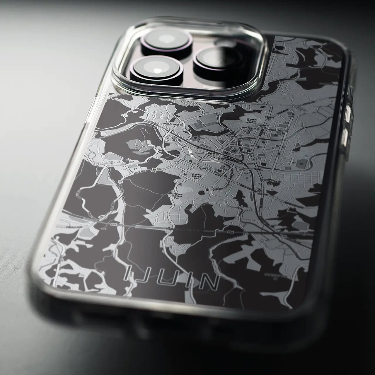 平面部には抜群の透明度を誇る高強度素材「ポリカーボネート」を採用。透明な海や川の部分にiPhone本体カラーが美しく映えます。