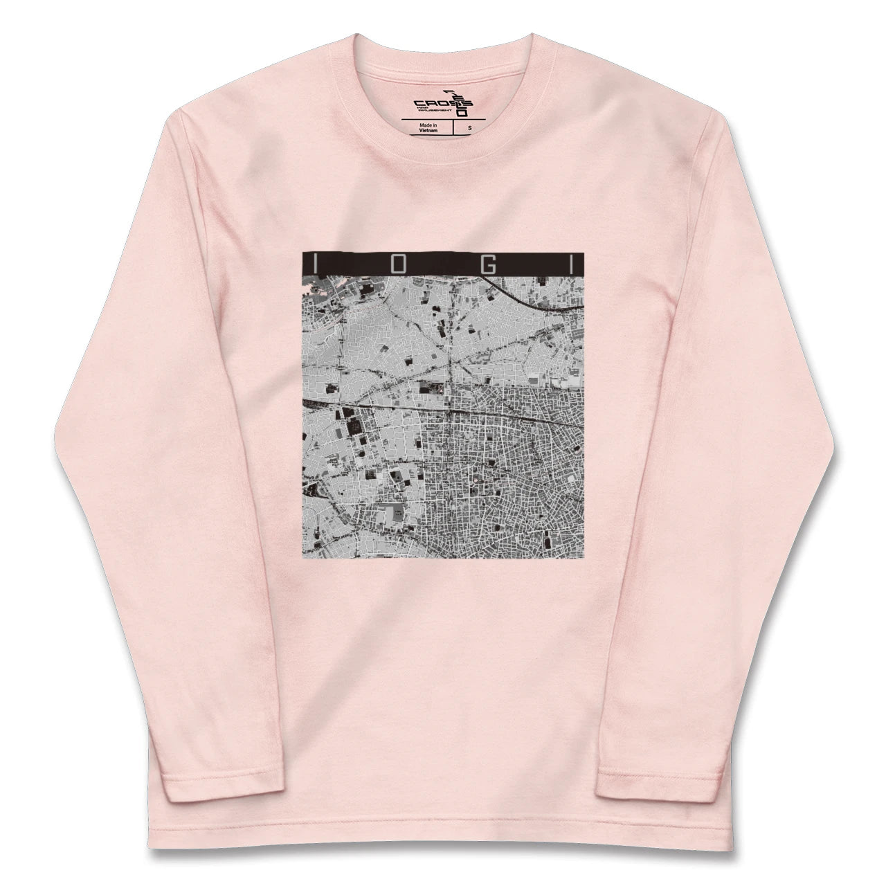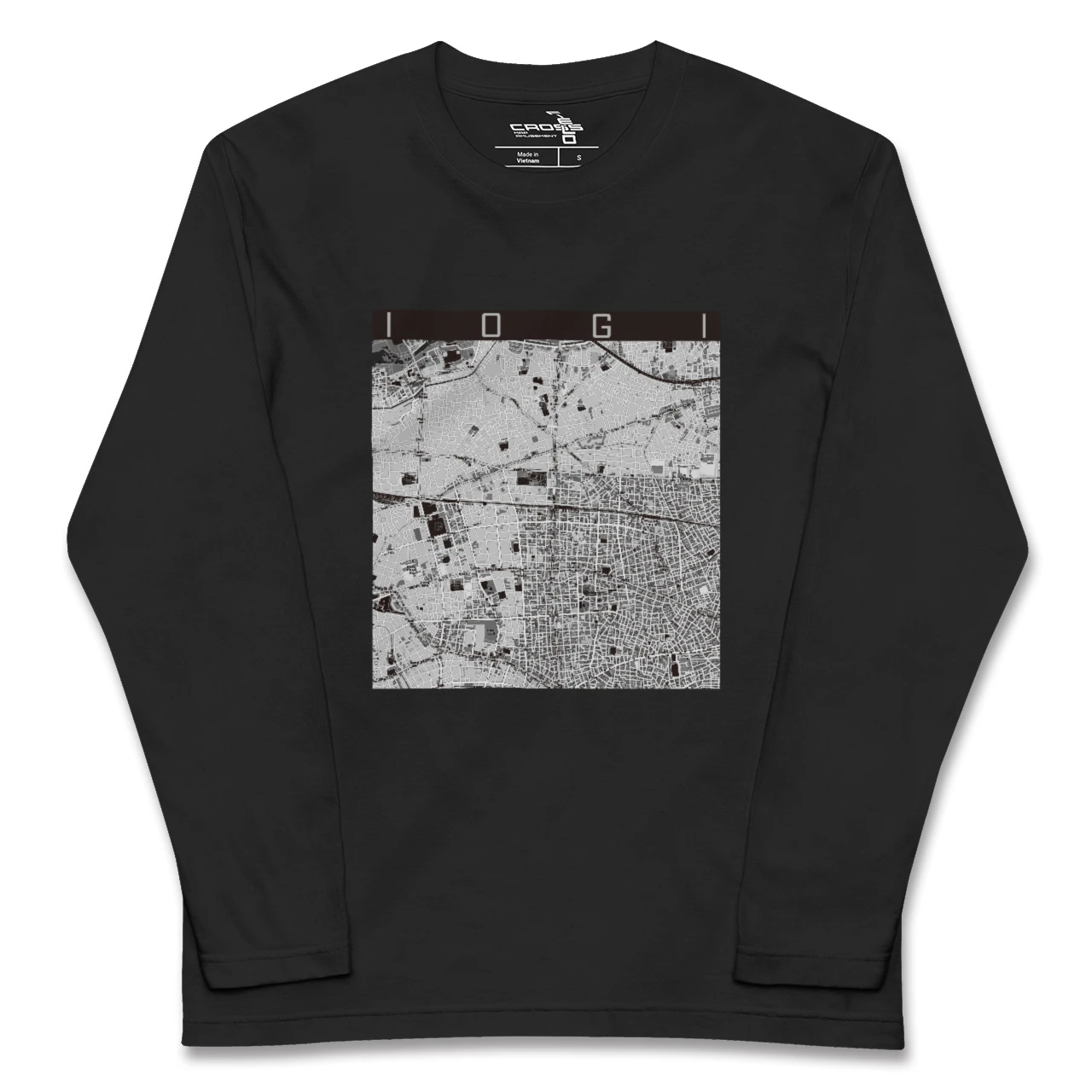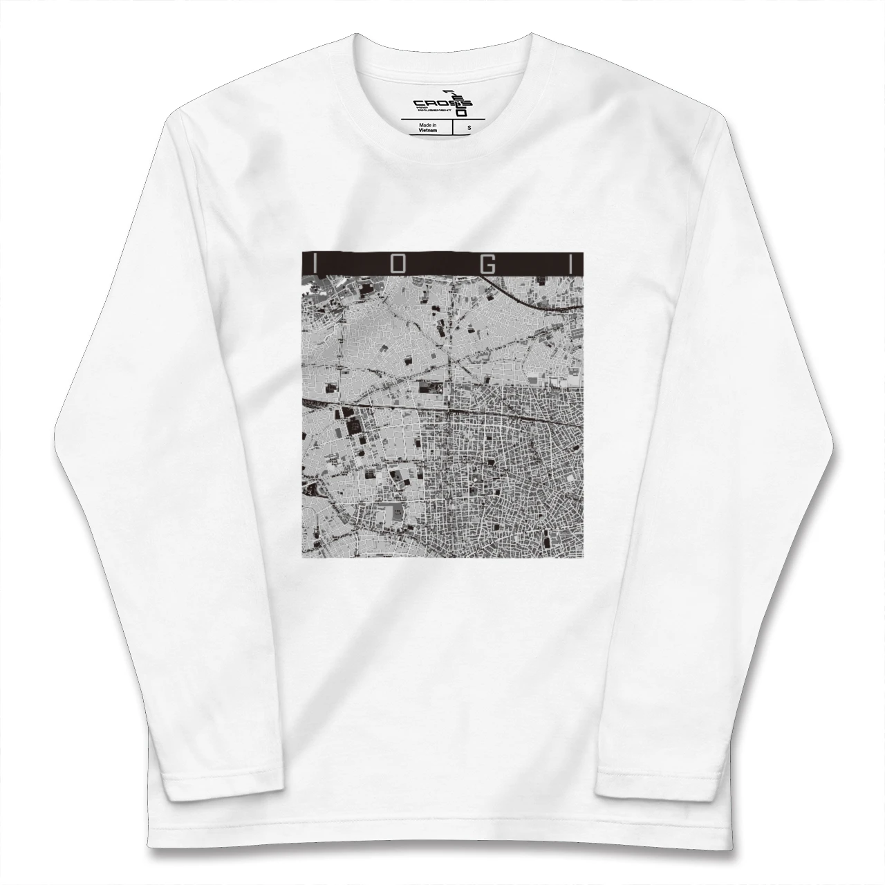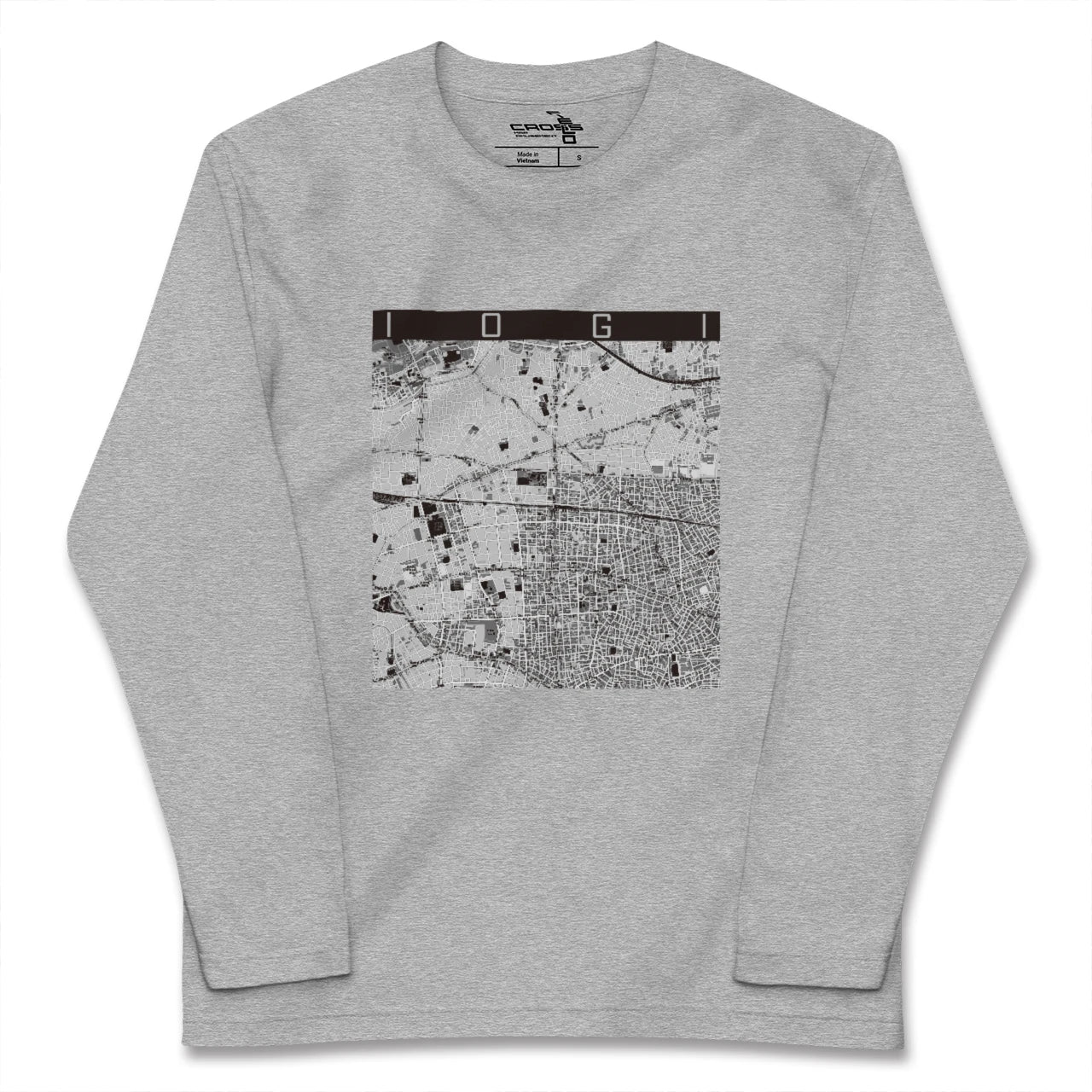 幅広いシーズンにフィットする長袖Tシャツにあなたの街「井荻」のモノトーンマップをプリントしました。