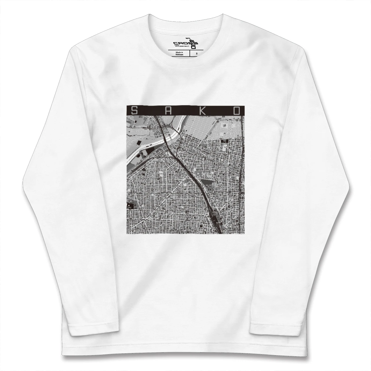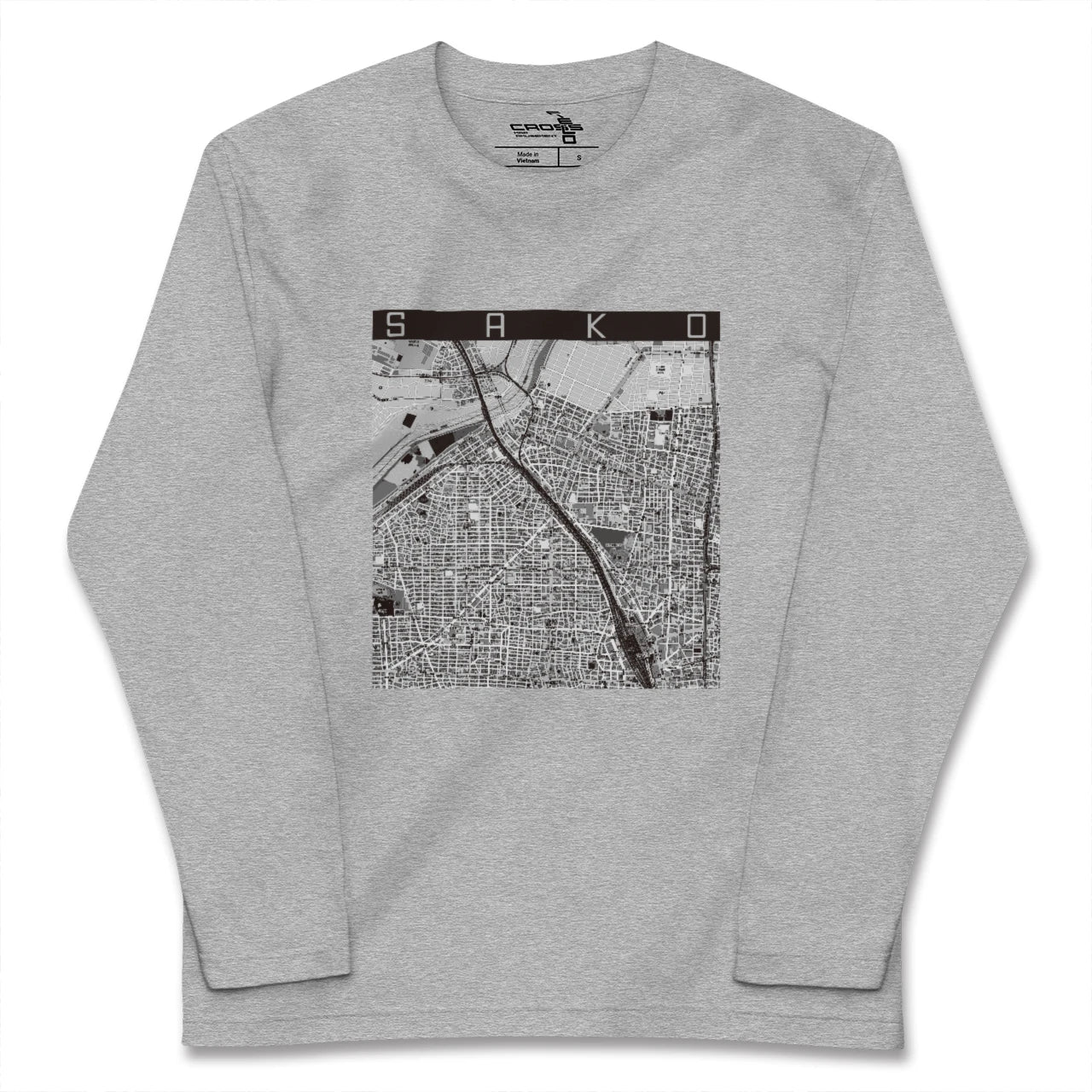 幅広いシーズンにフィットする長袖Tシャツにあなたの街「栄生」のモノトーンマップをプリントしました。
