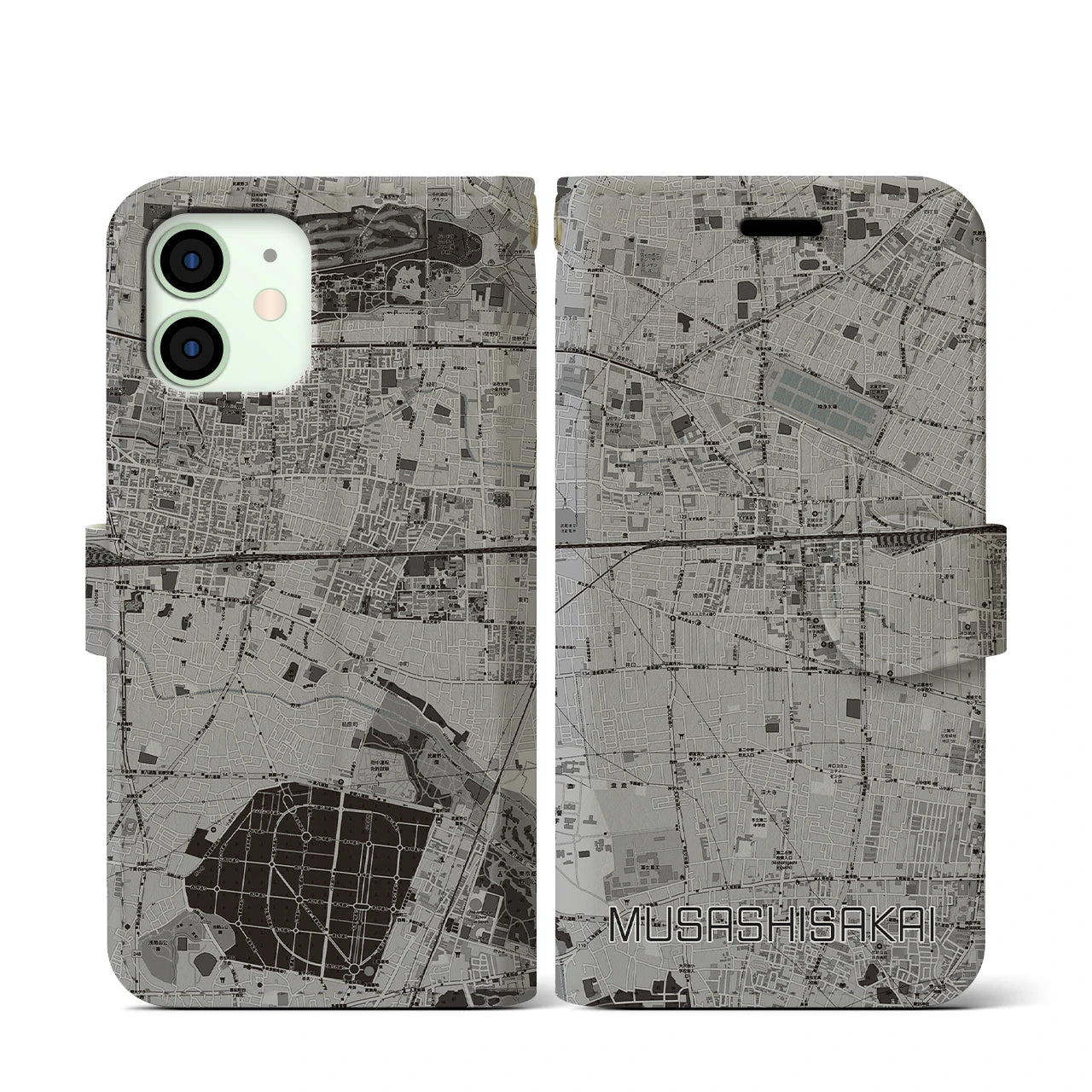 【武蔵境(東京都)】地図柄iPhoneケース(手帳タイプ)モノトーン・iPhone 12 mini 用