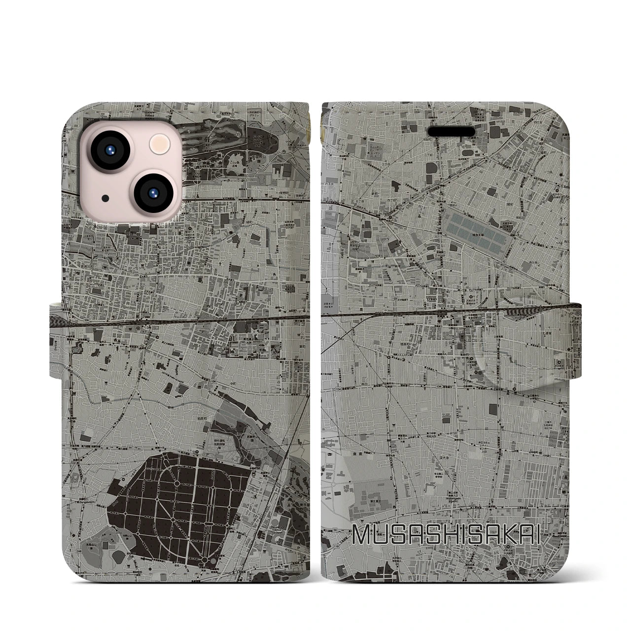 【武蔵境(東京都)】地図柄iPhoneケース(手帳タイプ)モノトーン・iPhone 13 mini 用