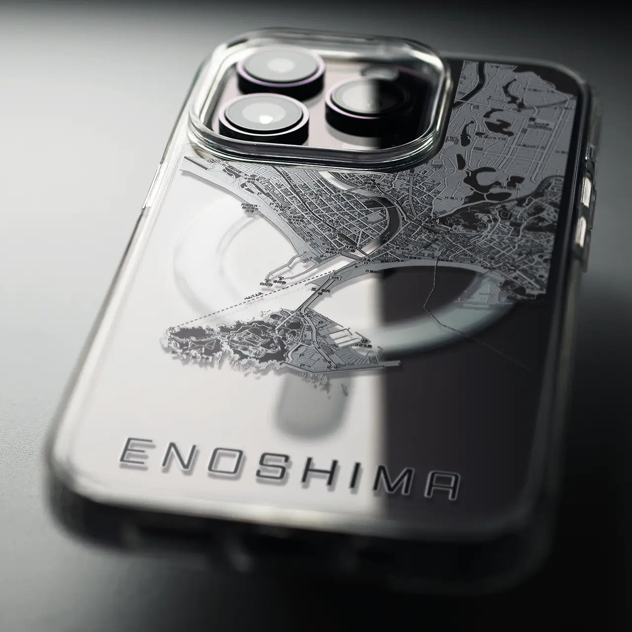 【江ノ島(神奈川県)】地図柄iPhoneケース(MagSafeタイプ)モノトーン・iPhone 16 Pro 用