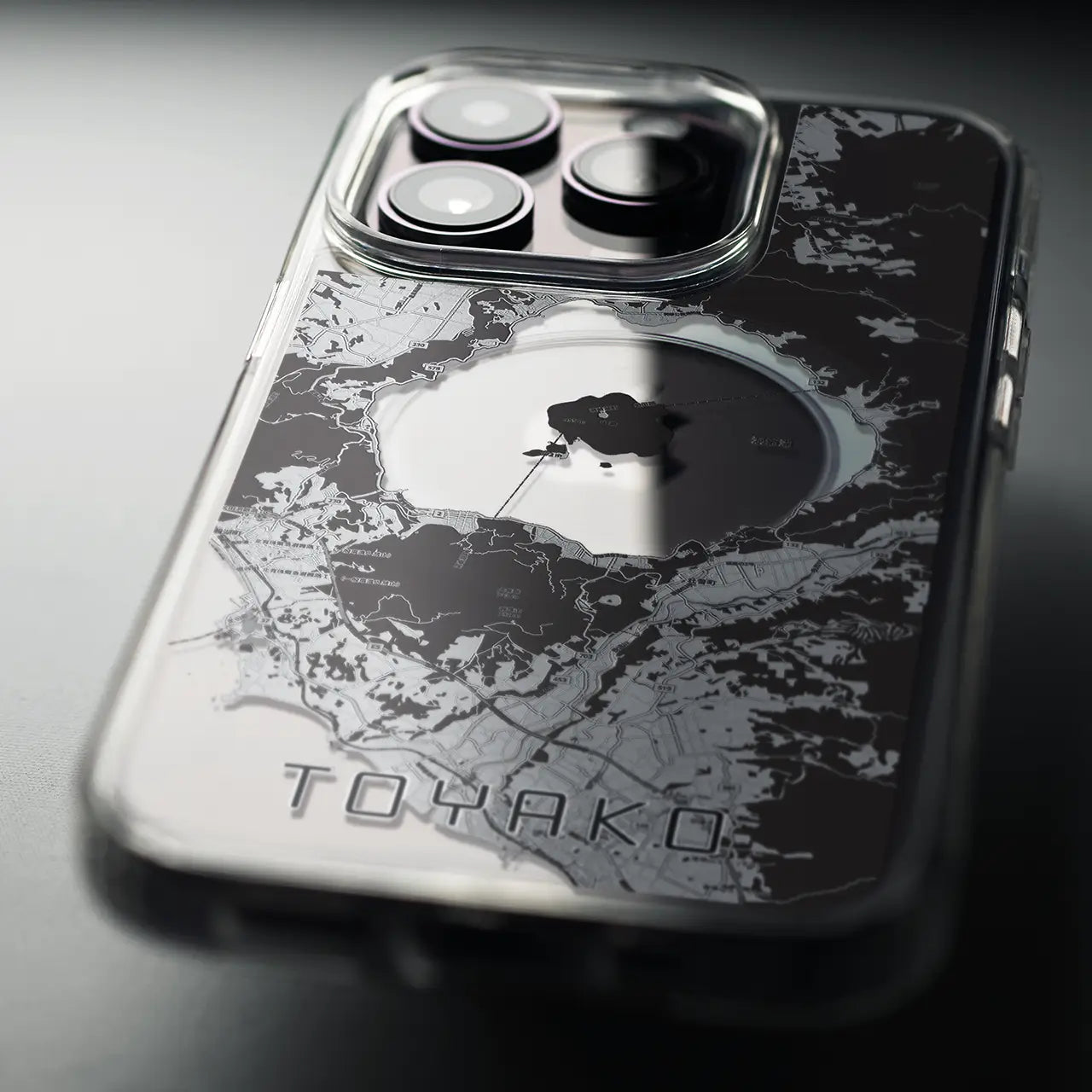 平面部には抜群の透明度を誇る高強度素材「ポリカーボネート」を採用。透明な海や川の部分にiPhone本体カラーが美しく映えます。
