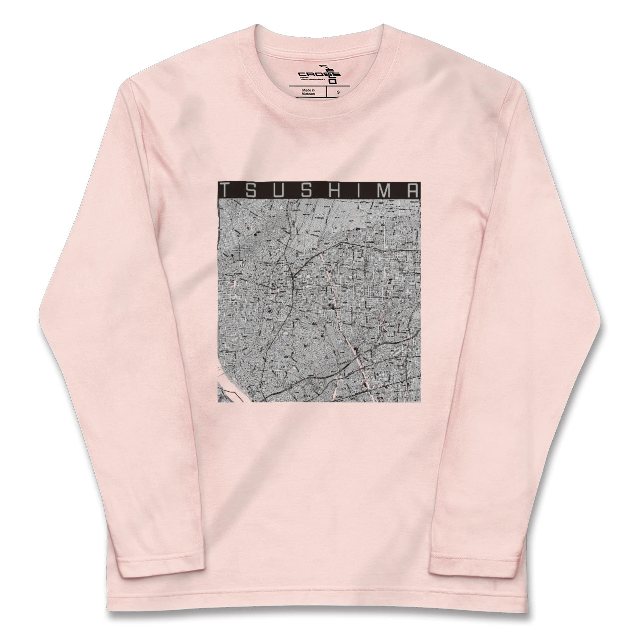 幅広いシーズンにフィットする長袖Tシャツにあなたの街「津島」のモノトーンマップをプリントしました。