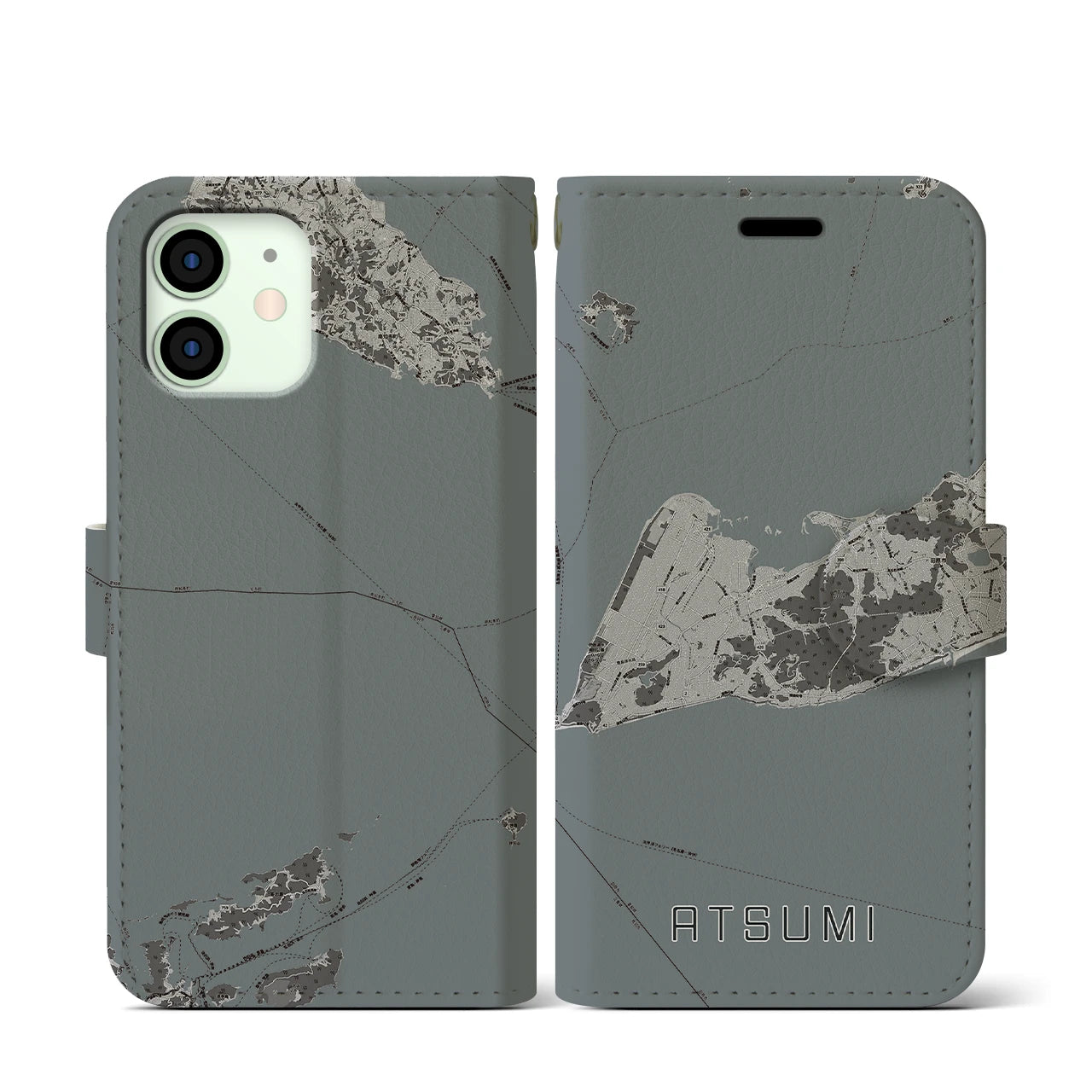 【渥美(愛知県)】地図柄iPhoneケース(手帳タイプ)モノトーン・iPhone 12 mini 用