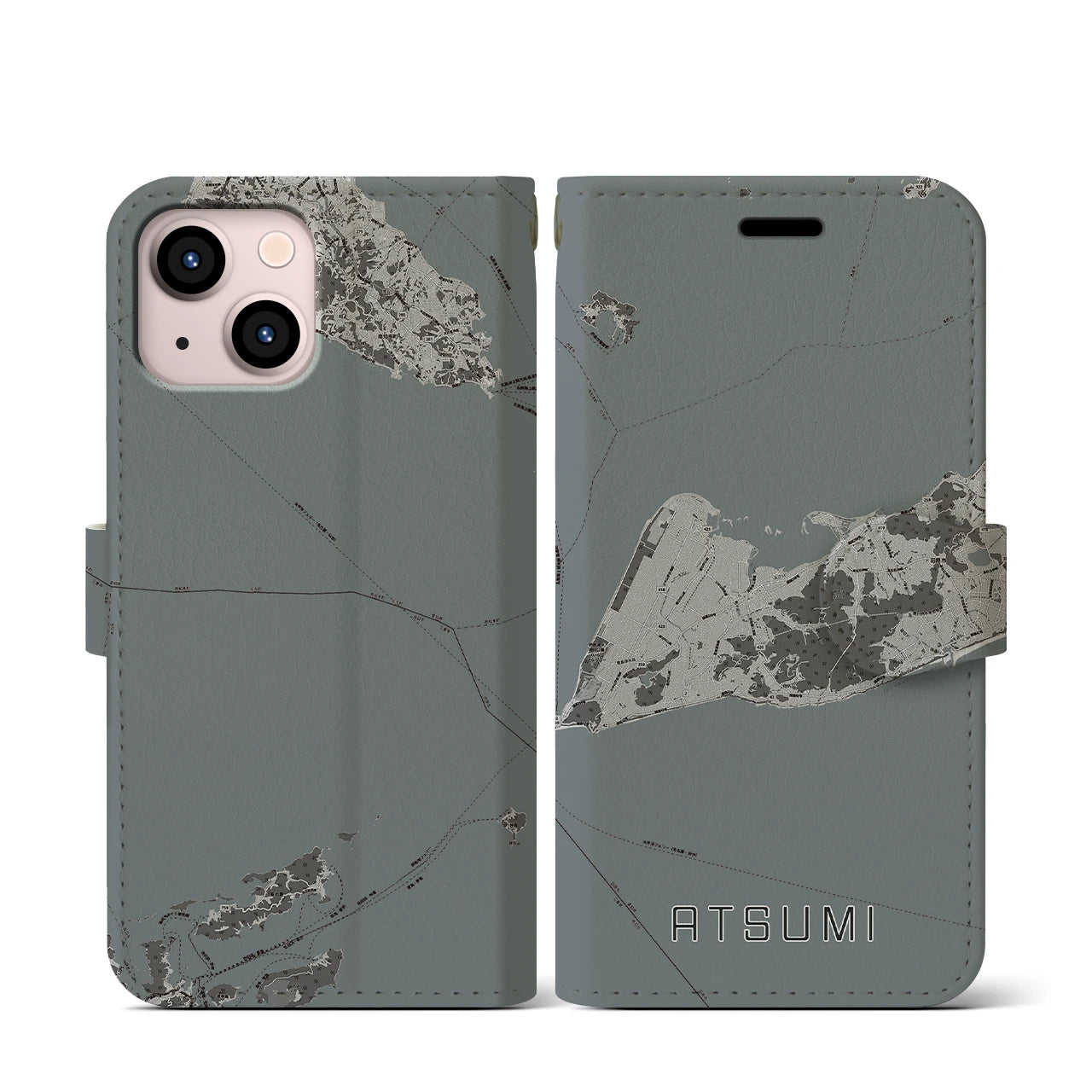 【渥美(愛知県)】地図柄iPhoneケース(手帳タイプ)モノトーン・iPhone 13 mini 用