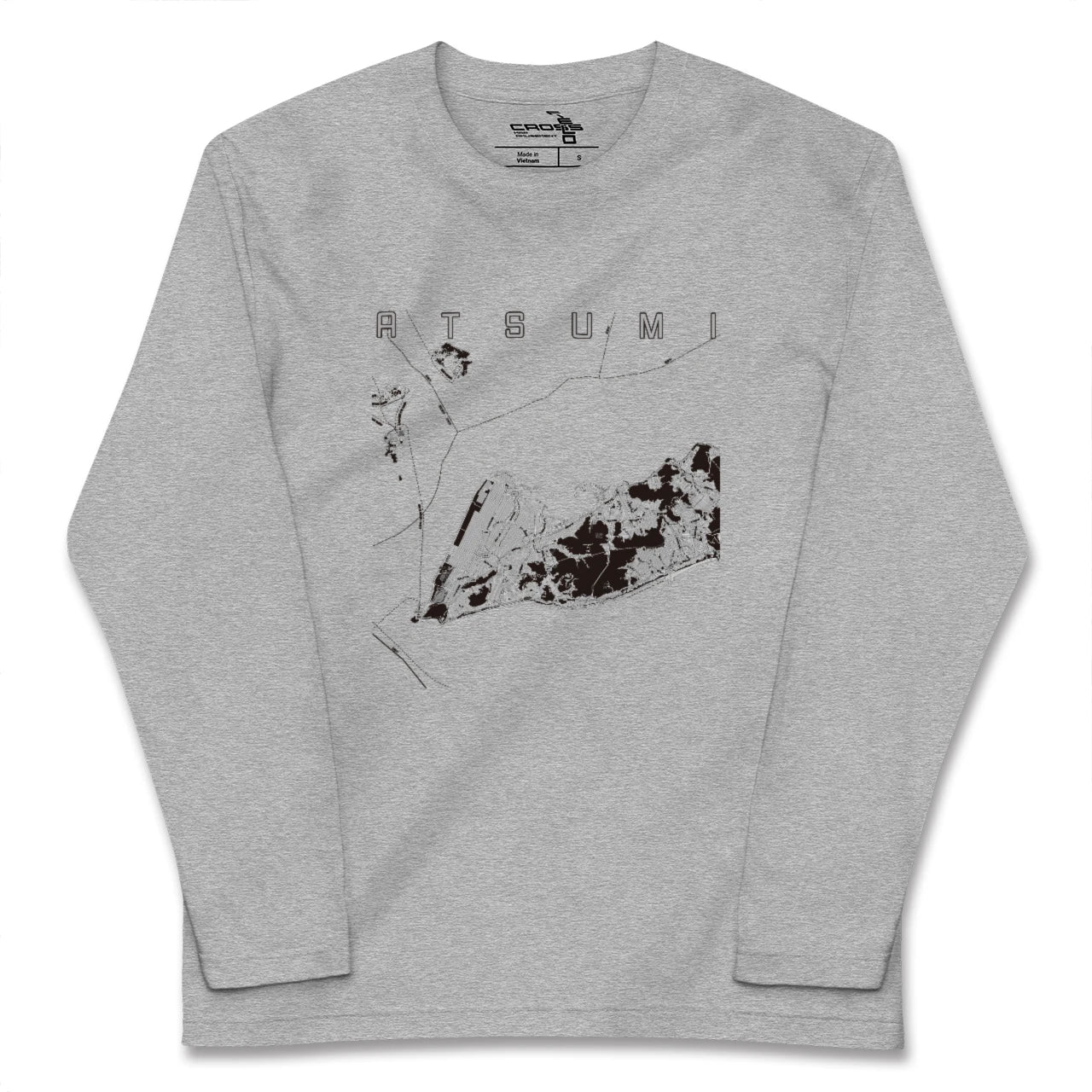 幅広いシーズンにフィットする長袖Tシャツにあなたの街「渥美」のモノトーンマップをプリントしました。