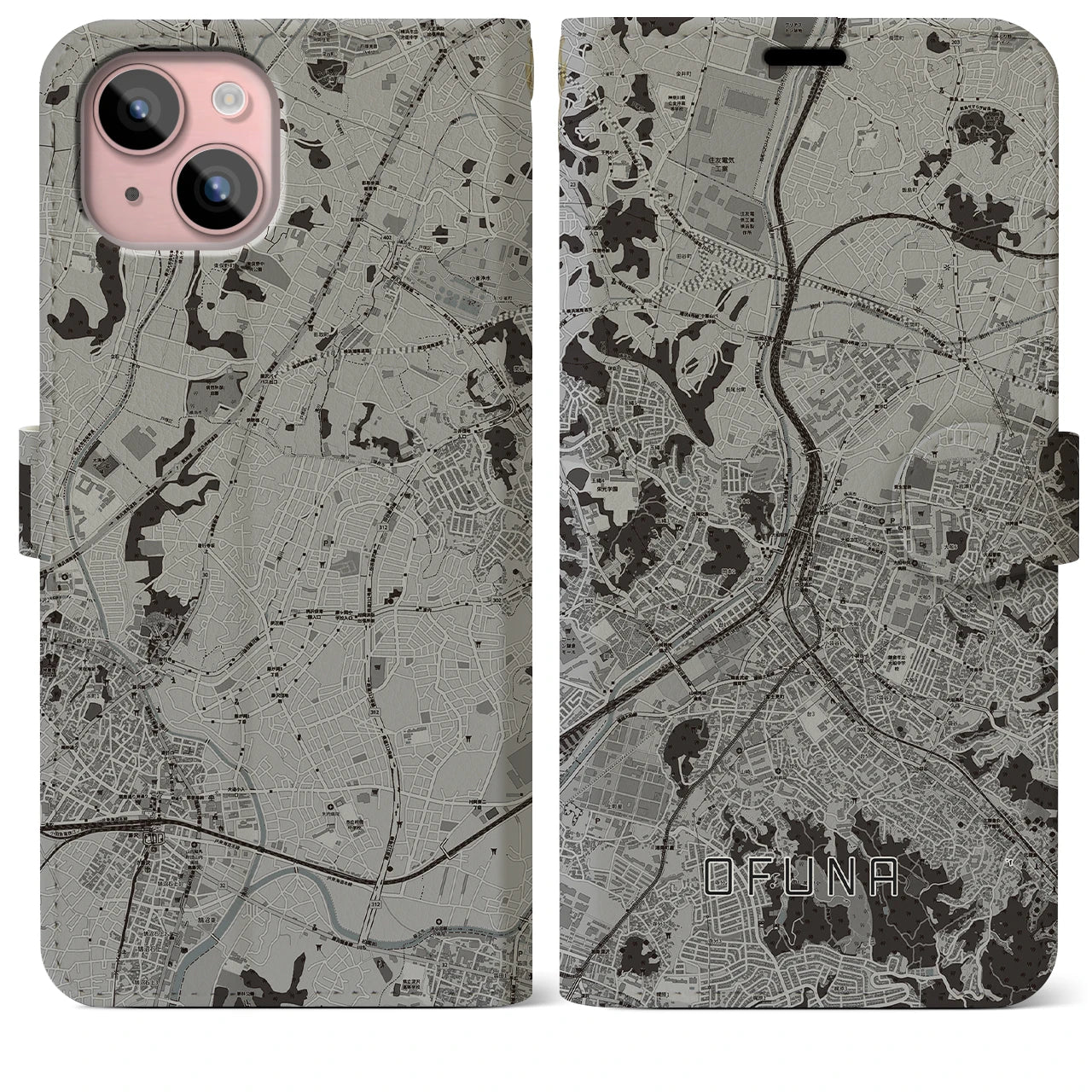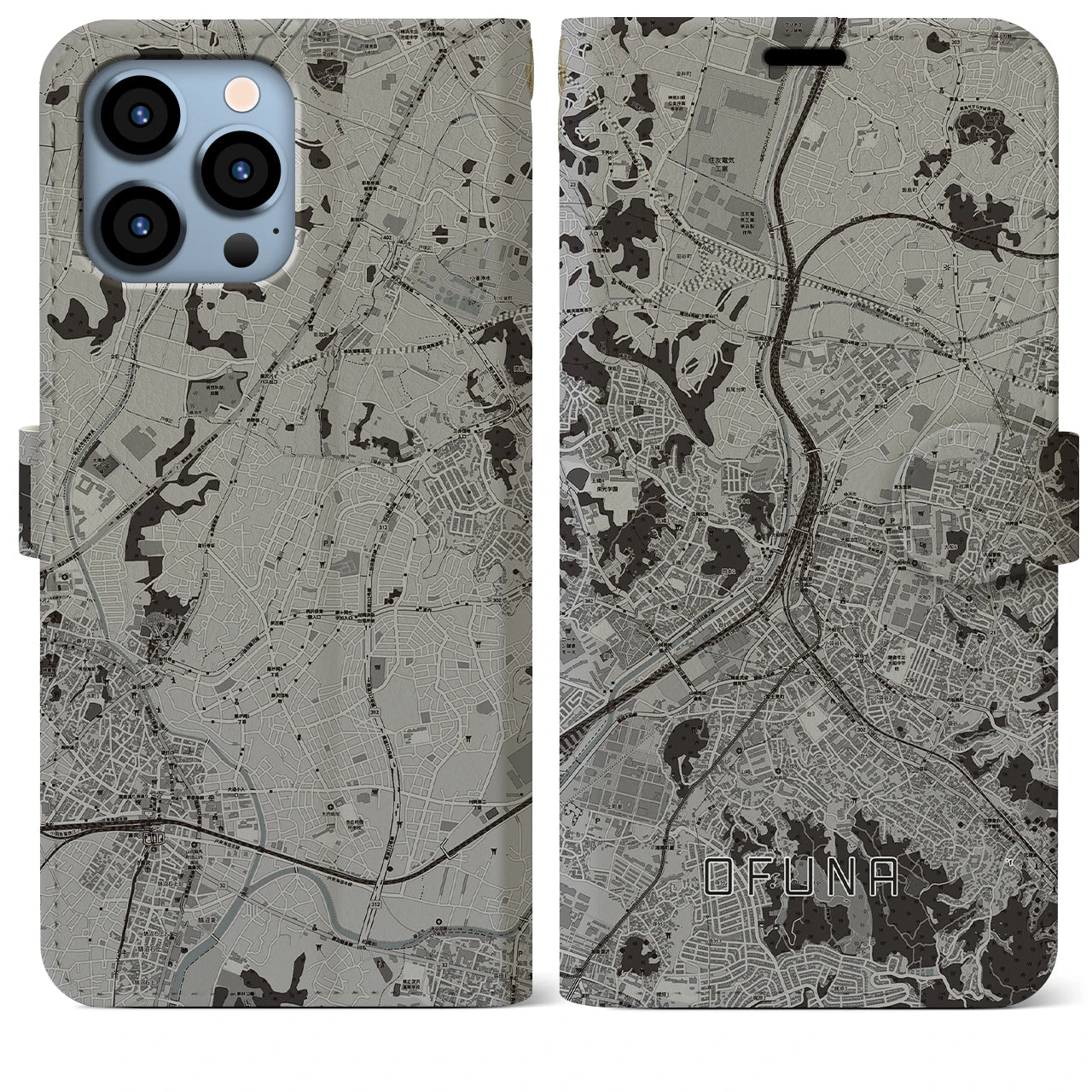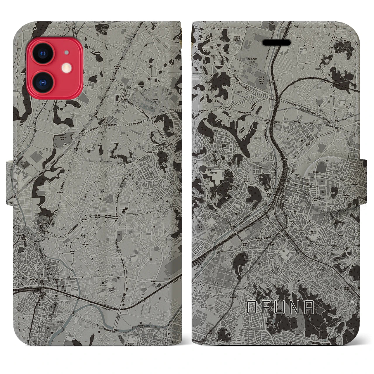 思い出の街、今を暮らす街、あなたが愛する「大船」の手帳タイプ地図柄iPhoneケースです。両面にまたがる大きなプリントで、離れていても「大船」をいつも身近に感じさせてくれます。