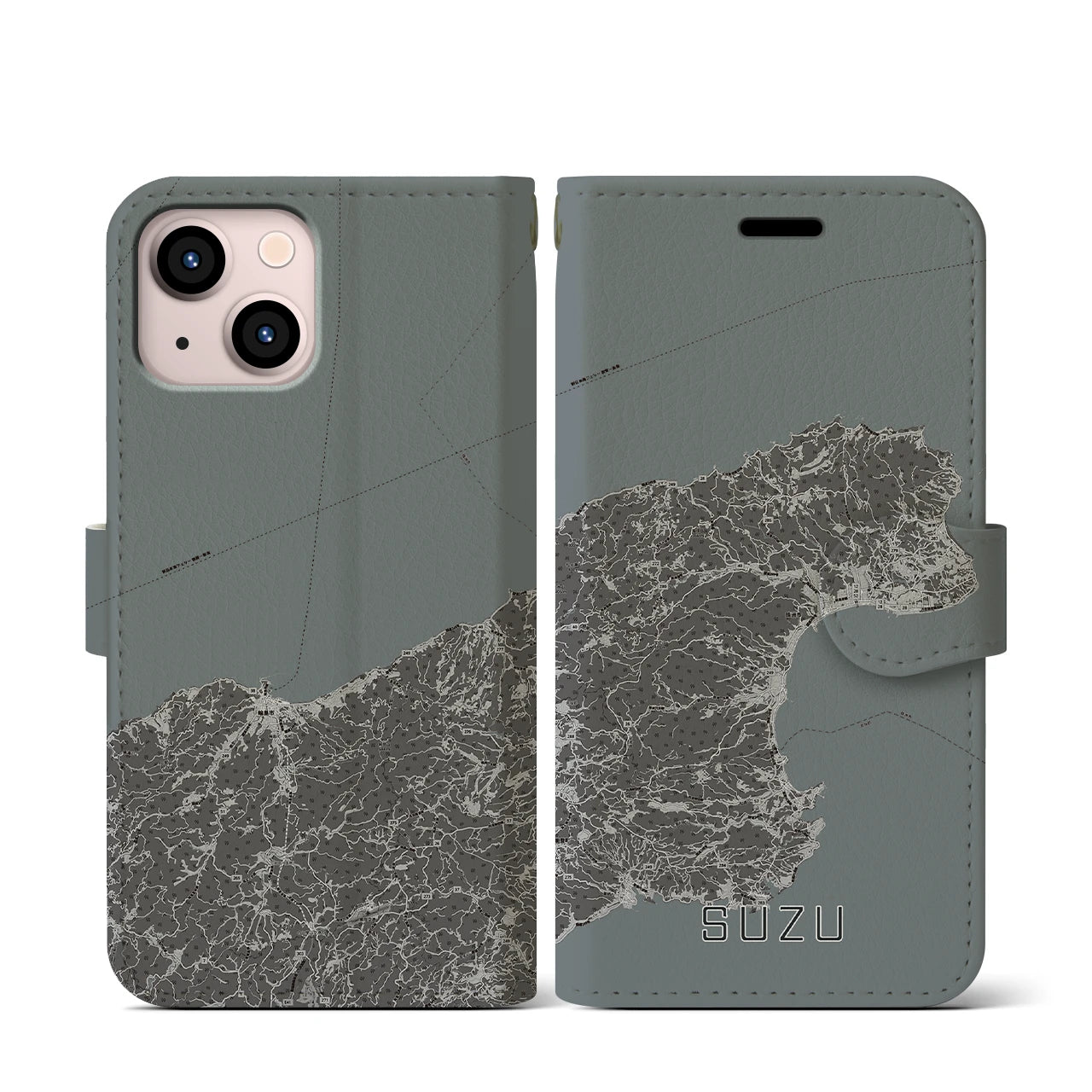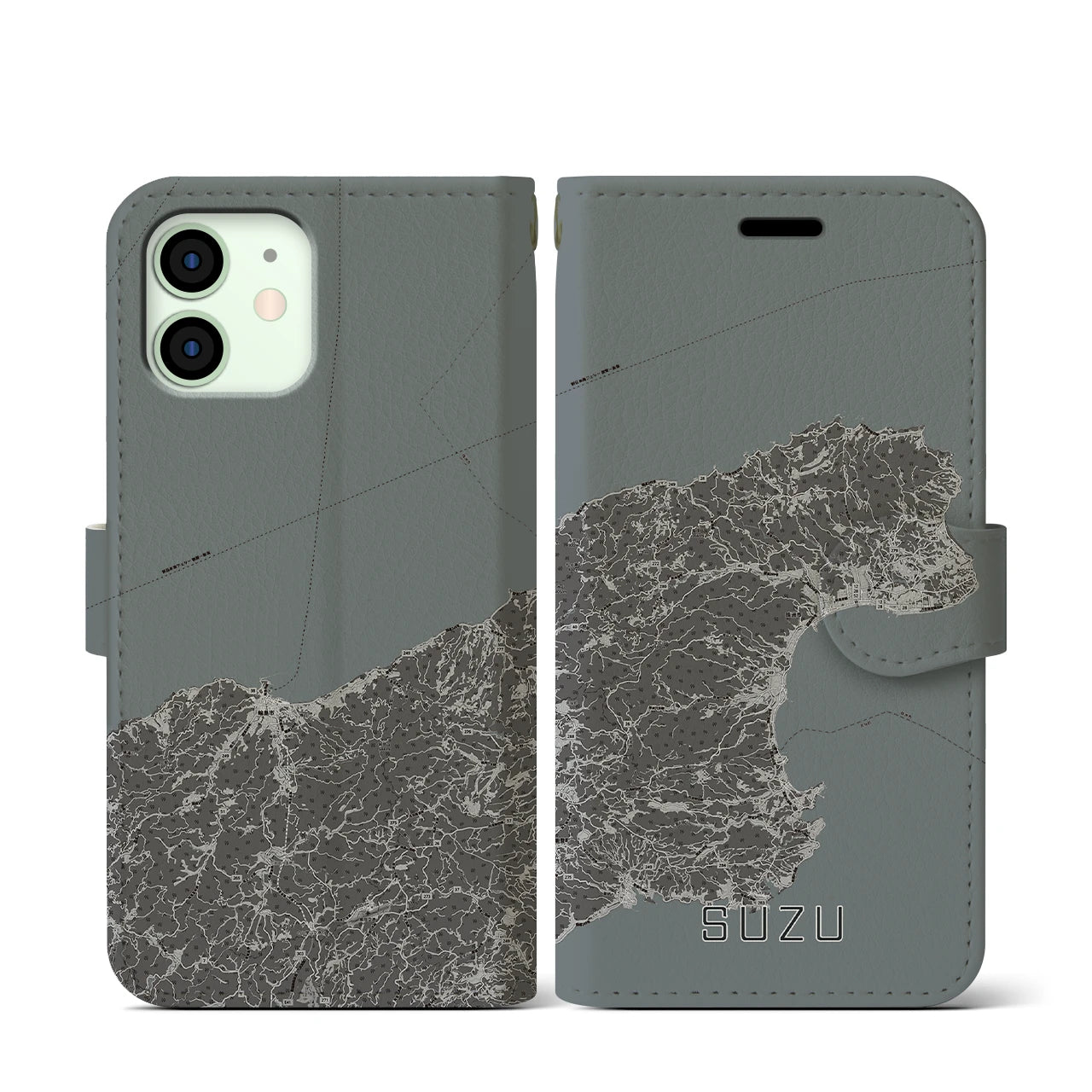 思い出の街、今を暮らす街、あなたが愛する「珠洲」の手帳タイプ地図柄iPhoneケースです。両面にまたがる大きなプリントで、離れていても「珠洲」をいつも身近に感じさせてくれます。