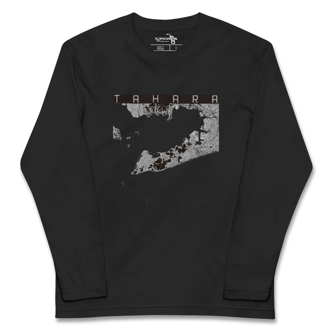 幅広いシーズンにフィットする長袖Tシャツにあなたの街「田原」のモノトーンマップをプリントしました。