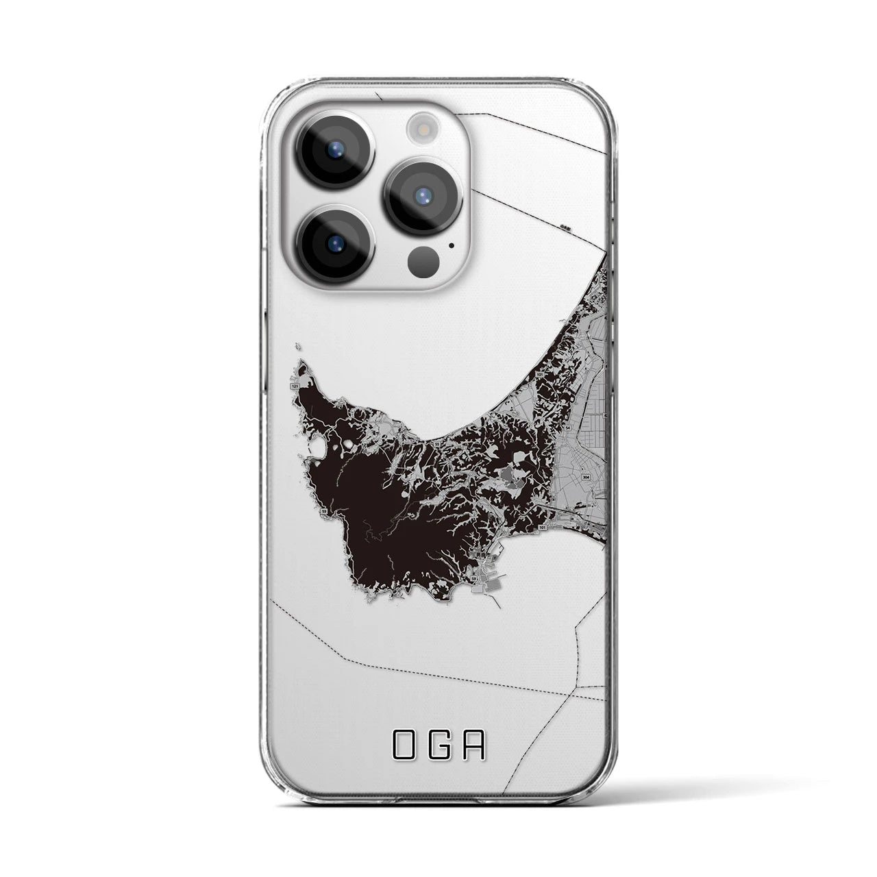 【男鹿(秋田県)】地図柄iPhoneケース(クリアタイプ)モノトーン・iPhone 17 Pro Max 用