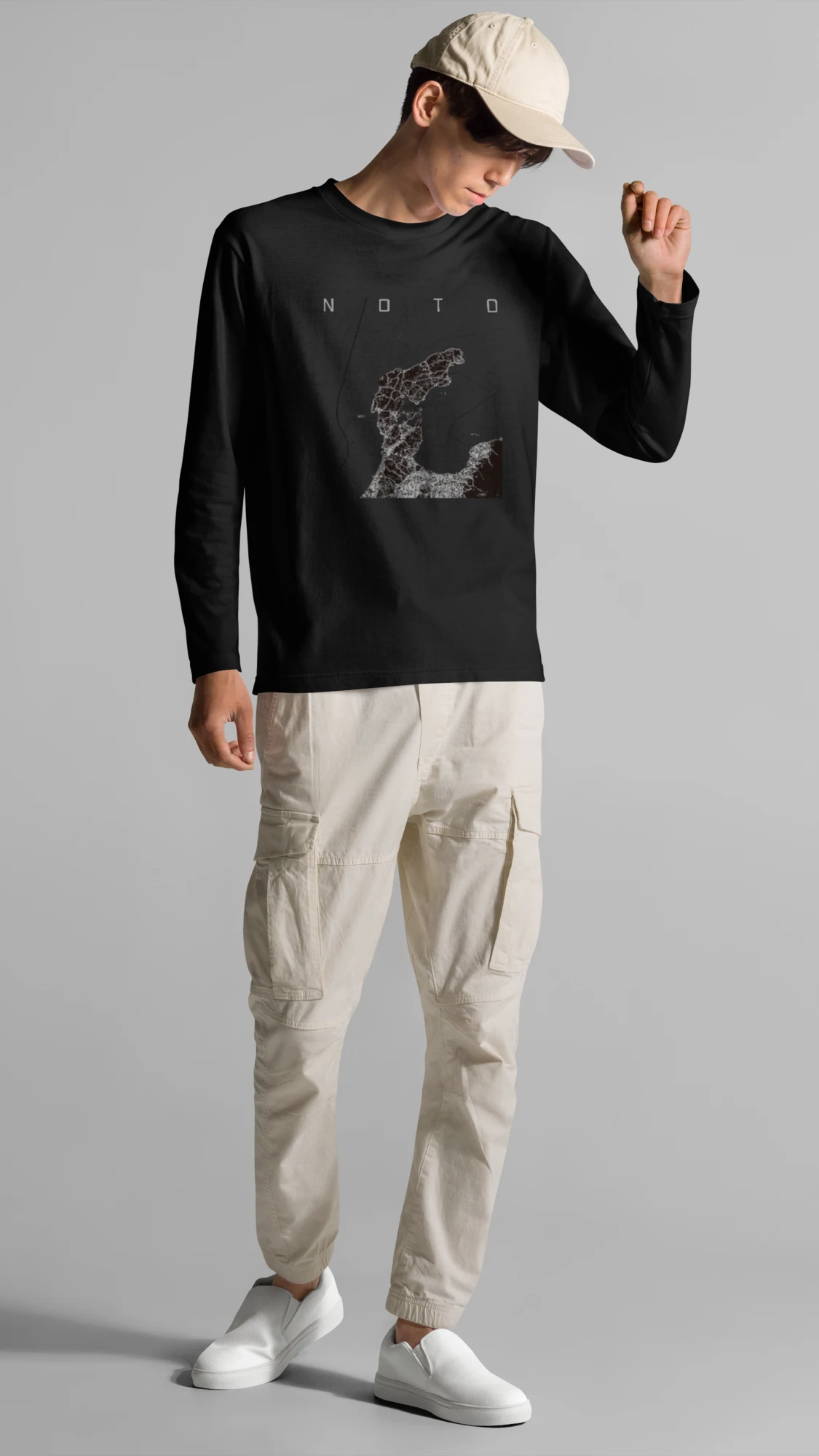 幅広いシーズンにフィットする長袖Tシャツにあなたの街「能登」のモノトーンマップをプリントしました。