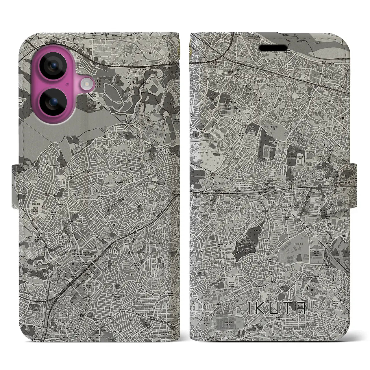 思い出の街、今を暮らす街、あなたが愛する「生田」の手帳タイプ地図柄iPhoneケースです。両面にまたがる大きなプリントで、離れていても「生田」をいつも身近に感じさせてくれます。