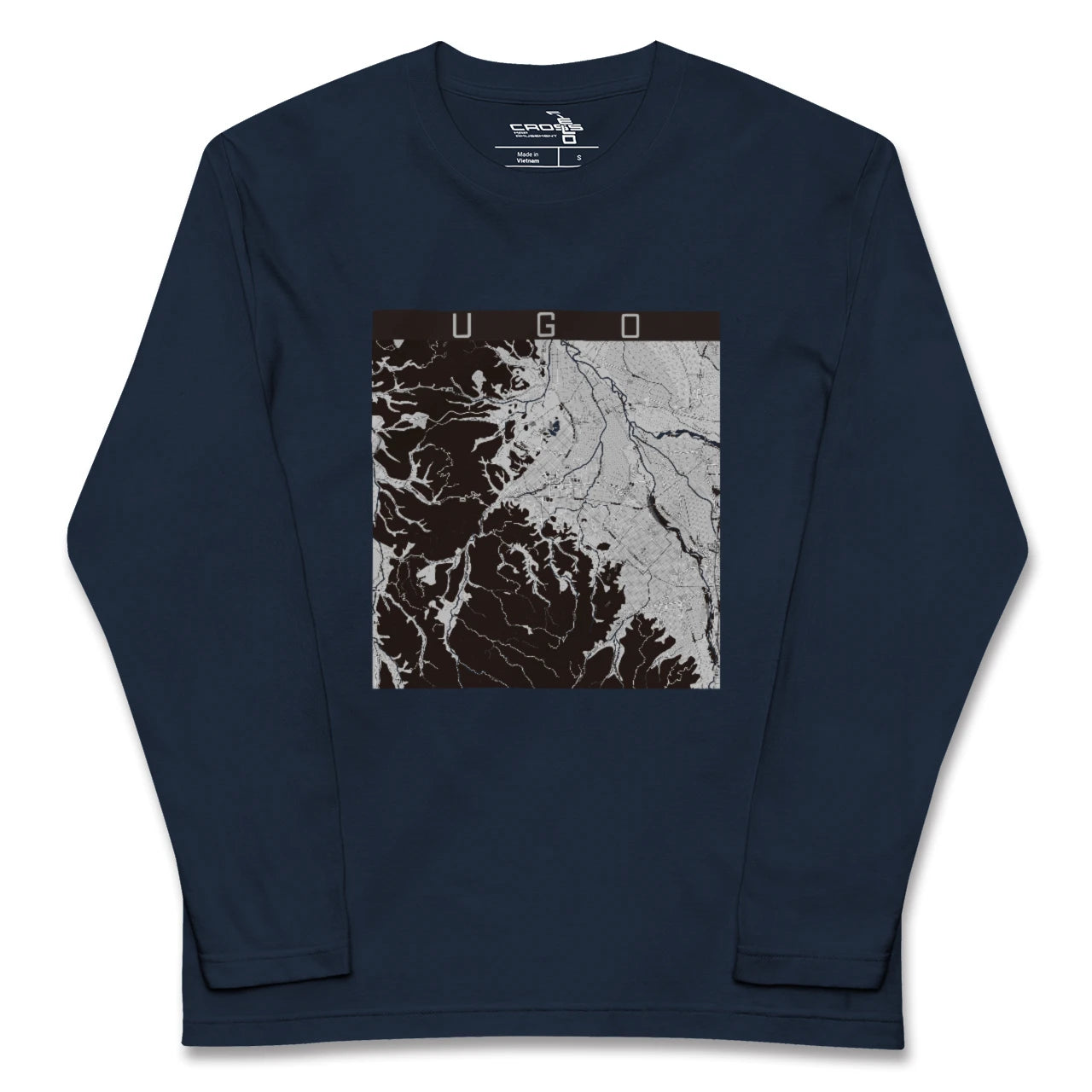 幅広いシーズンにフィットする長袖Tシャツにあなたの街「羽後」のモノトーンマップをプリントしました。